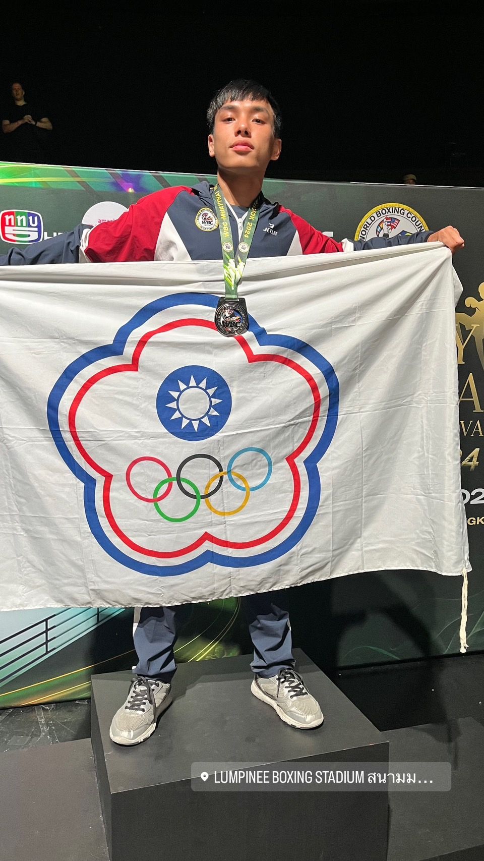 ▲女性選手鄭楷瑄 51 kg 奪銅牌,秀出中華台北奧會旗。(圖/臺北市體育總會)