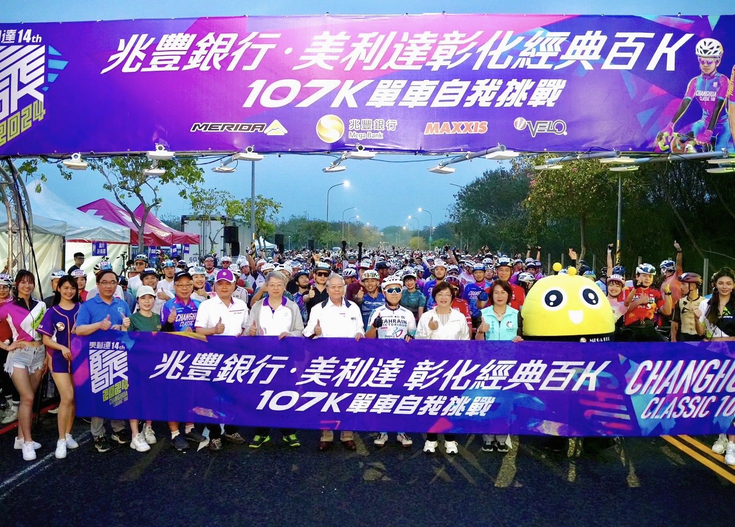 「2024兆豐銀行‧美利達彰化經典百K自行車賽」30日熱鬧登場,本屆賽事由兆豐銀行連續兩年冠名贊助,「兆豐銀行‧美利達彰化經典百K自行車賽」是近年來國內廣受好評,最具指標性的單車休閒賽事之一,更是媒體及消費者票選好感度及專業度第一的休閒運動賽事。昨日活動由彰化縣長王惠美、兆豐銀行董事長雷仲達、副總經理陳建中、美利達自行車副總經理鄭文祥、副總經理劉明根、副總經理曾進成及交通部觀光署參山國家風景區管理處副處長湯維堯一同鳴笛,鼓勵車友走出戶外,突破自我,讓騎單車成為最棒的戶外休閒運動。