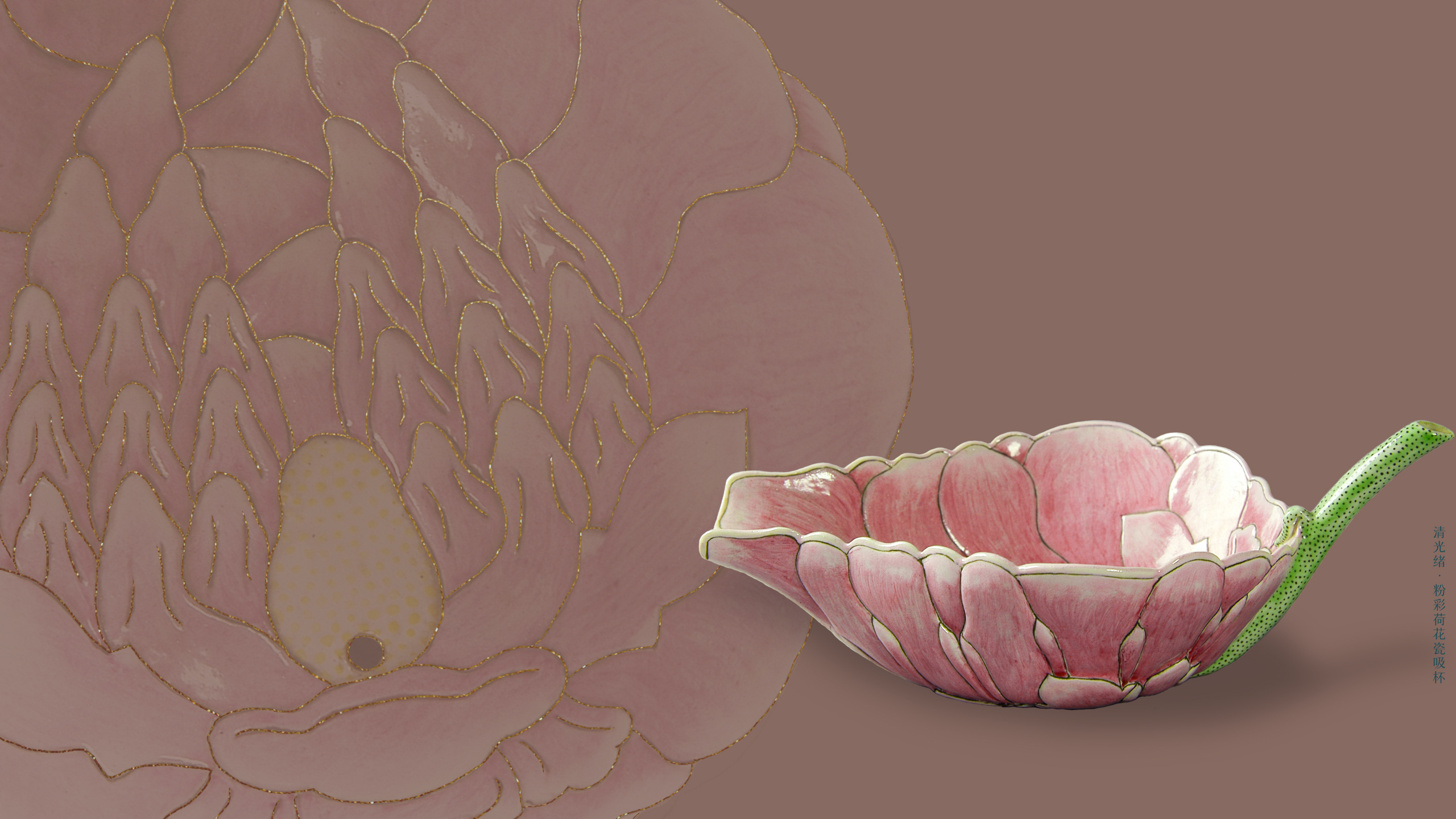 在湖北省博物館,就收藏有一絕美的清代粉彩荷花吸杯, 杯子整體造型如一朵盛開的荷花,粉白粉紅的花瓣中,有一小孔,與花梗相連,花梗中空,此荷梗既為杯柄,又為吸管,吸酒以飲,頗具雅趣。