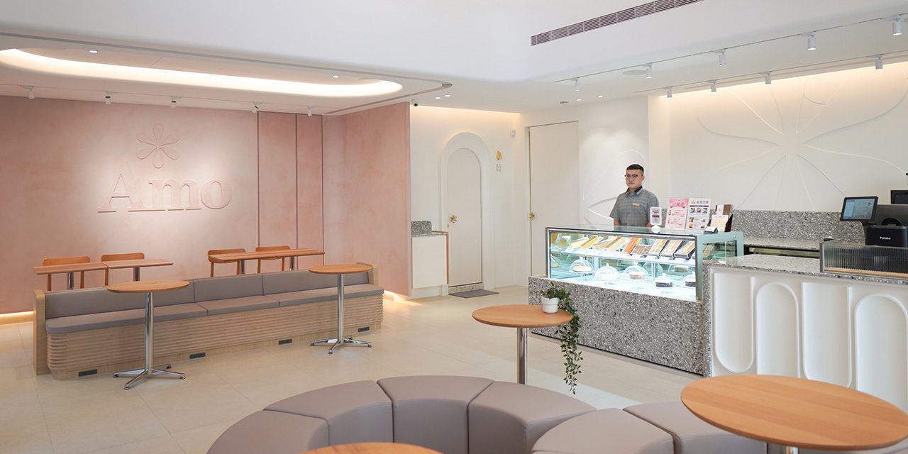 整體設計以Amo的品牌色做發想,加入南部的海岸特色,設定了以大自然中可見的「粉紅珊瑚色」為主色,搭配純淨的白色、淺木色及淺灰色的水磨石,營造一個精巧可人的空間調性。