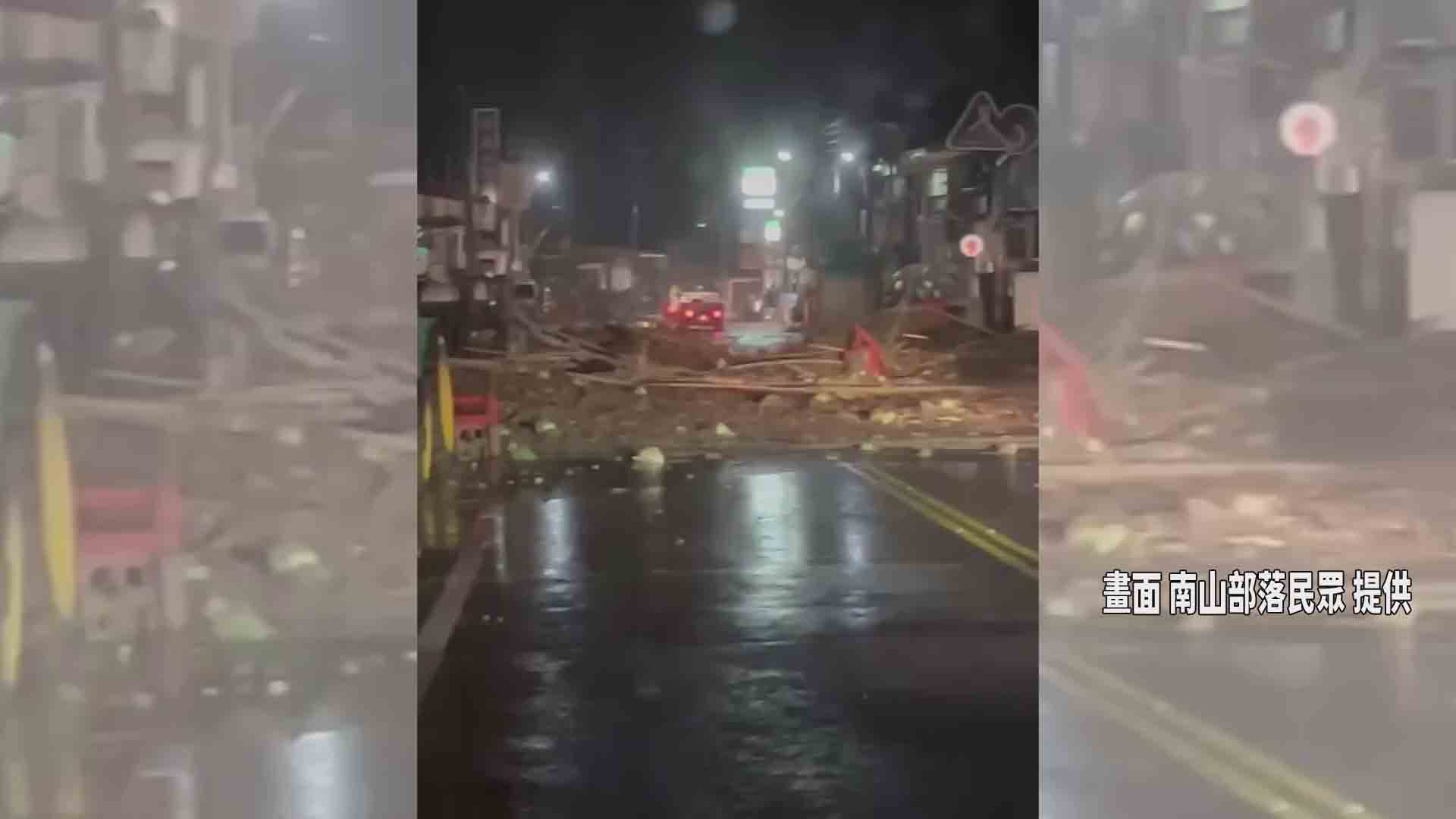 受到凱米颱風的影響,宜蘭縣大同鄉大雨滂沱不斷,24日晚間11點多,大量的土石隨著雨水直接沖到南山部落的街道上,交通嚴重受阻。
