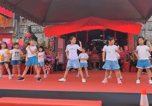 面對跳舞跳到一半,音樂莫名轉換,舞台上的小朋友個個不知所措,最後只能重頭來過,所幸小朋友們順利完成演出。帶領小朋友跳律動舞蹈的謝老師,都忍不住想問:「是關聖帝君不喜歡韓團,想聽自己的音樂?」