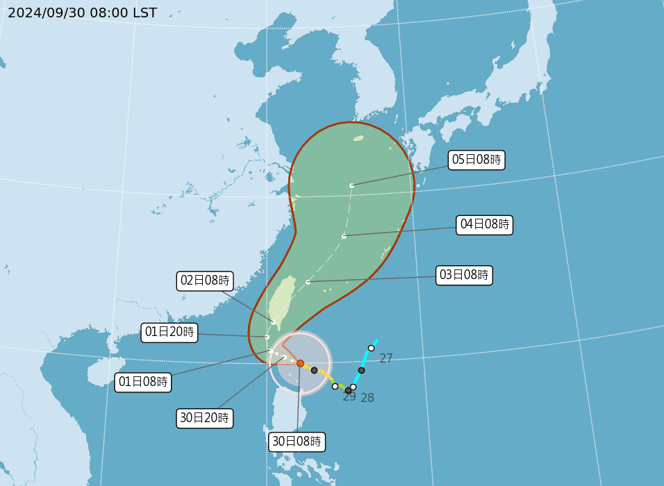 中度颱風山陀兒逐漸逼近台灣,中央氣象署發布中度颱風海上、陸上颱風警報,預測最接近影響台灣的時間,會從原本的周二延長到周四的上半天,也是颱風對台灣影響最明顯的時段。