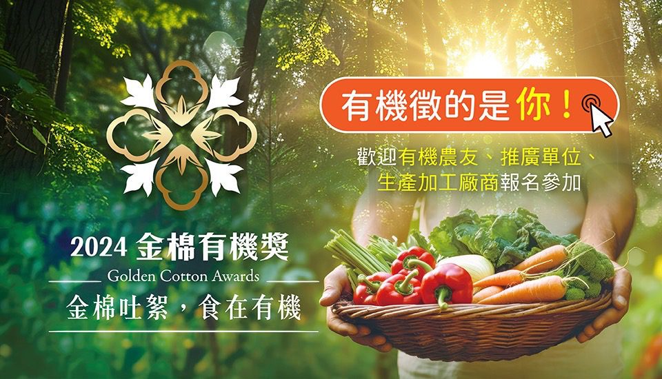 由棉花田生機園地主辦,農業部農糧署指導,中華民國農訓協會協辦的「2024金棉有機獎」,只要是有機農友、廠商或推廣有機的單位,無論個人或團體,都歡迎報名參加!評選過程由政府、學術專家組成審查委員會,依照政府有機規範與國際有機趨勢,確保活動的公平、公正及專業性。
