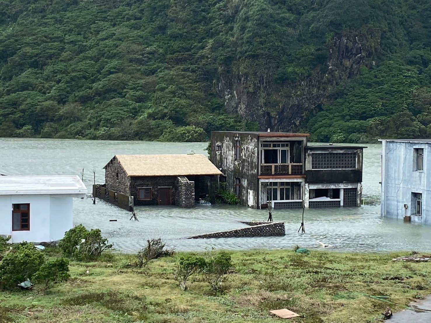 康芮強颱重創了東臺灣,連龜山島也在這次強颱侵襲下,受到了重創,島上滿目瘡痍,不但島上沒電,連龜尾潭的水都淹到的島上還留存的屋宅裡。交通部觀光署東北角管理處今天(11月4日)會同賞鯨協會等單位登島場勘後,確認相關服務設施、設備及環境整潔受損,目前難立即恢復原貌,因此東北角管理處也在第一時間調來抽水機將龜尾潭的湖水抽出,回復原貌外,也搶修恢復了電力。