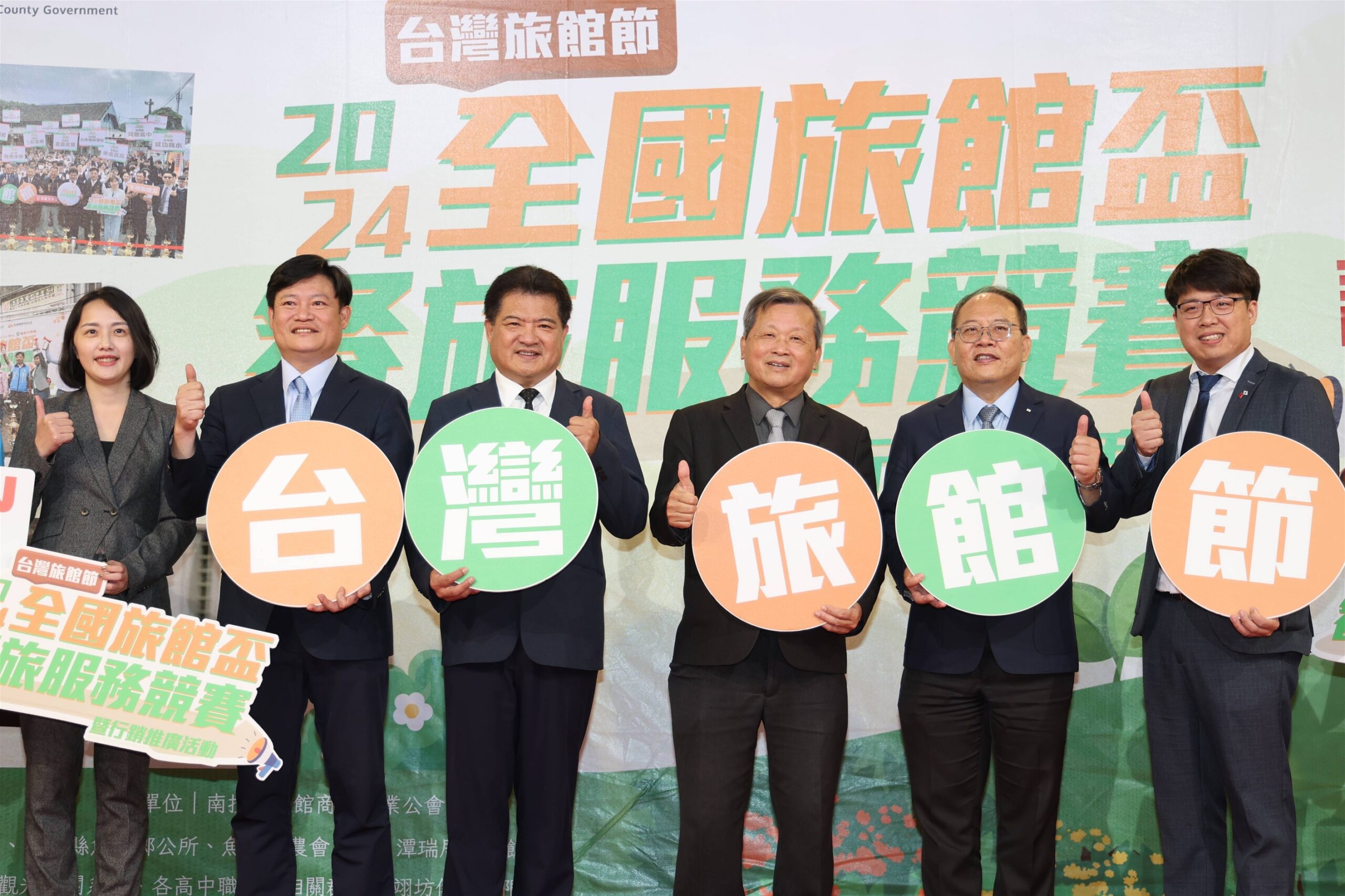 2024「臺灣旅館節全國旅館盃餐旅服務競賽」將於11月21日(週四)在日月潭瑞居渡假飯店隆重登場。今(11月12日)日,南投縣旅館商業同業公會於南投縣政府一樓大廳舉辦賽前記者會,由交通部觀光署、南投縣副縣長王瑞德及旅館公會理事長李吉田共同主持,現場嘉賓雲集,包含南投縣政府觀光處處長陳志賢、科長黃山、交通部觀光署日月潭國家風景區管理處湯維堯副處長、南投縣旅館公會榮譽理事長林志穎、南投縣觀光產業聯盟協會理事長魏振宇、南投縣北港溪溫泉觀光發展協會理事長李浩瑋、南投縣信義鄉東埔溫泉觀光協會理事長張進忠、南投縣清境觀光協會理事長張宏毅、南投縣埔里鎮形象商圈協會理事長陳巨凱、南投縣休憩農園產業促進會理事長李光曜、南投縣民宿觀光協會副總幹事李崇聖、南投縣烹飪商業同業公會總幹事陳嫚妮、南開科技大學休閒事業管理系主任許勝程、教授曾干育、日月潭瑞居渡假飯店執行長蔡佳佁,及縣內各旅館業代表皆共襄盛舉,場面熱鬧非凡。