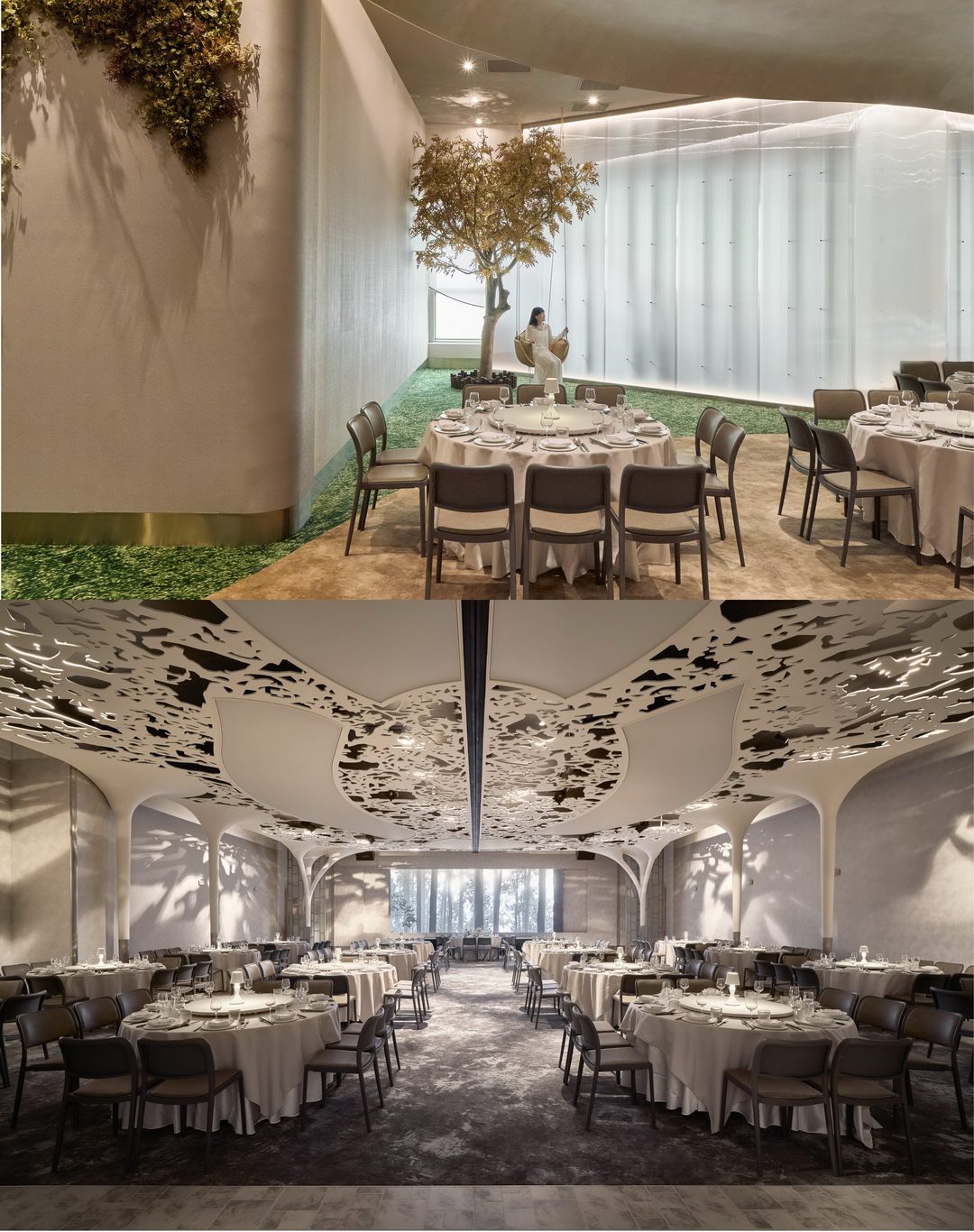 典華此次不僅推出全新空間,更將周邊餐食、器皿甚至14間VIP休息室一併升級!混血侘寂風格的VIP休息室使用舒適柔和的色彩,添加綠色植栽,選用暖色調皮革沙發,讓賓客沉浸療癒氛圍。主廚團隊延續空間的自然生命力,將宴客餐食創新,無論是眼觀、食用或觸感皆讓人有嶄新體驗。餐具大膽挑選業界獨有的動態波紋杯及手感溫潤刀叉,大幅提升品味及高級感;餐食由9月榮獲2024年新加坡國際美食大賽的典華金牌主廚團隊結合「大自然」與「美味」,每樣菜色皆可看見如陽光、花草、雲朵等自然元素。