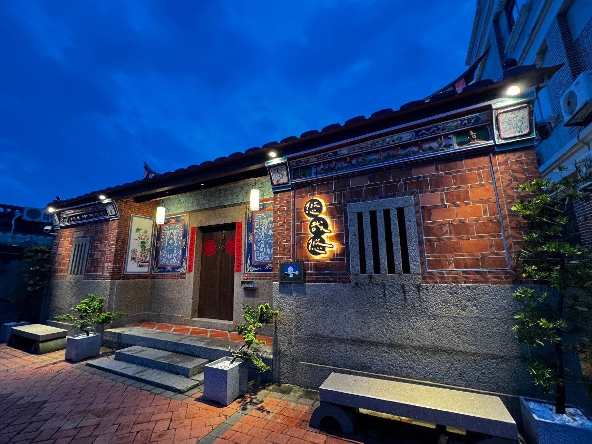 夜幕低垂時,戶外庭院燈光點綴,微風吹拂下,古厝彷彿披上一層柔和的暖光。遊客可於綠意環繞的交誼廳內啜飲一杯香氣四溢的金門高粱咖啡,或在靜謐的氛圍中細細品味這片土地的故事。