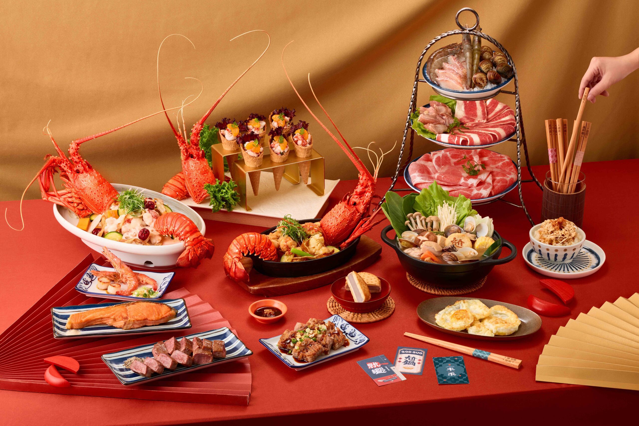「丰禾」端出「龍來丰媽祖」豪華菜色,有清爽開胃的「水果叭噗龍蝦鬆」、溫潤甘甜的「奶油當歸龍蝦」及經典必吃「蔥薑醬爆龍蝦」3道聯名餐點,活動期間到店內用消費多人套餐,能以699元優惠價,加購原價1,280元龍蝦料理。再贈價值1,200元的現金券、祈願小卡和限量「媽祖祝福筷」1雙。