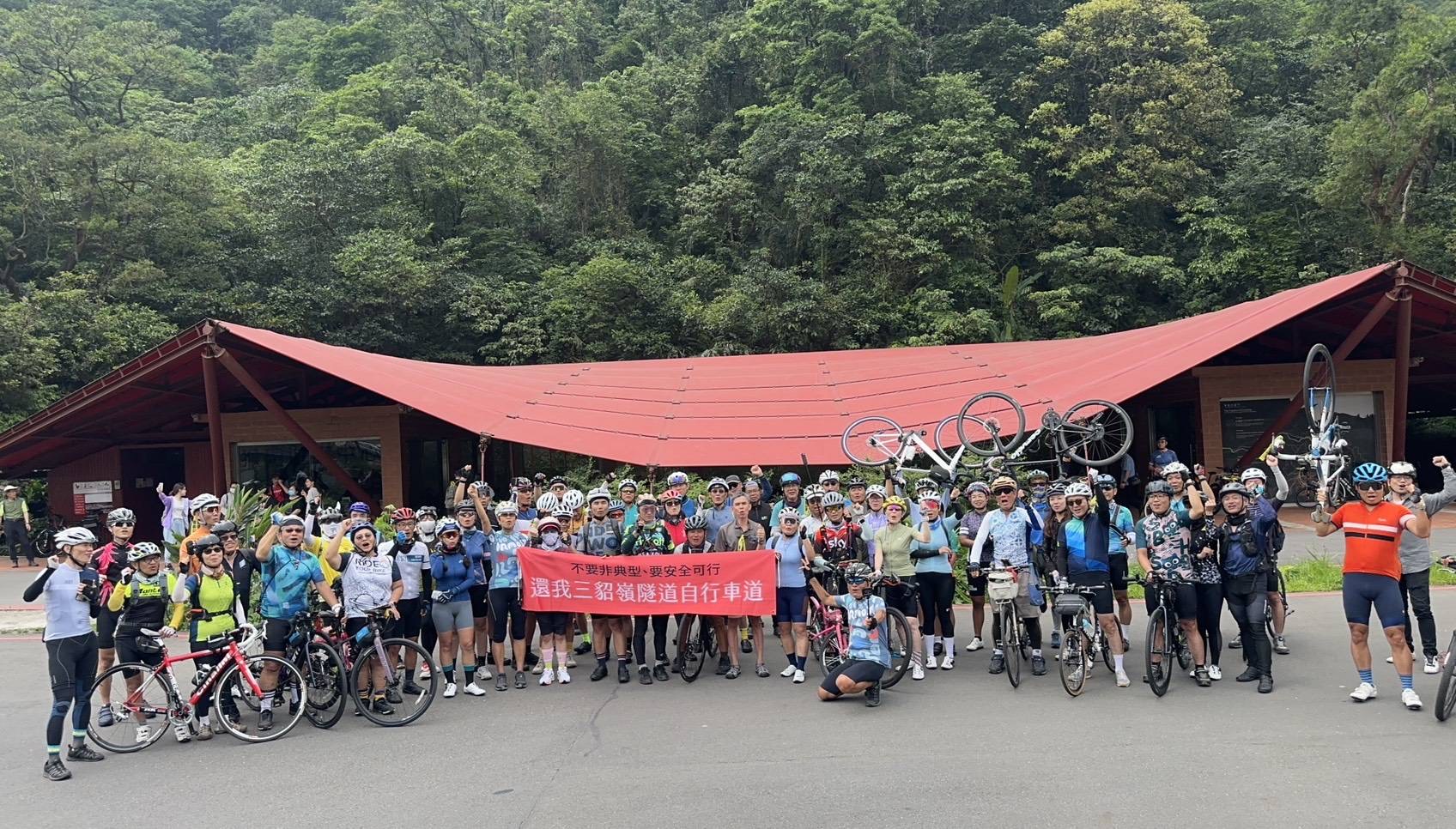 逾百位車友齊聚猴硐遊客中心,發起「還我三貂嶺隧道自行車道」快閃行動ㄧ周年活動。這次參與者來自全台各地,甚至有民眾攜家帶眷利用公共交通與公共自行車共襄盛舉,展現民間對此議題的持續關注與堅定訴求。