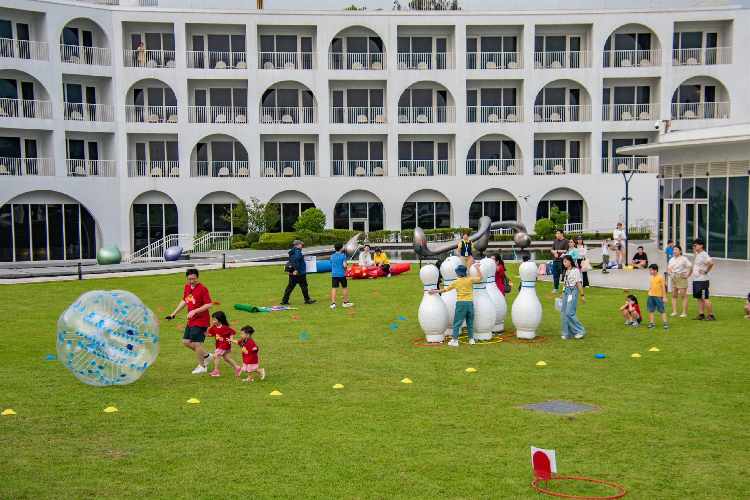 除了戲水區之外,「草坡樂園大冒險」更是活動的亮點。現場將搭配埔頂草原地形設置多款大型遊具與體驗設施,不管是大朋友還是小朋友都能盡情奔跑、挑戰自我。「巨型保齡球挑戰」考驗體力,孩子們能推著比自己還高的保齡球,全力命中目標,享受成就感與歡笑;「陸上龍舟衝衝衝」模擬划龍舟的動作在草地上競速,增進協作默契;而最受歡迎的「水花四濺滑水道」,水花飛濺,讓孩子尖叫連連、笑聲不斷,是最消暑也最能留下記憶的遊戲時光。
