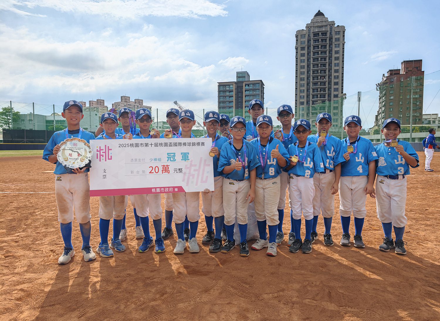 第十屆桃園盃國際四級棒球錦標賽少棒組24日決賽上演桃園內戰,衛冕隊龜山國小靠著9支安打及11次四死球,以9:1擊敗中平國小,贏下桃園盃的隊史第八冠。