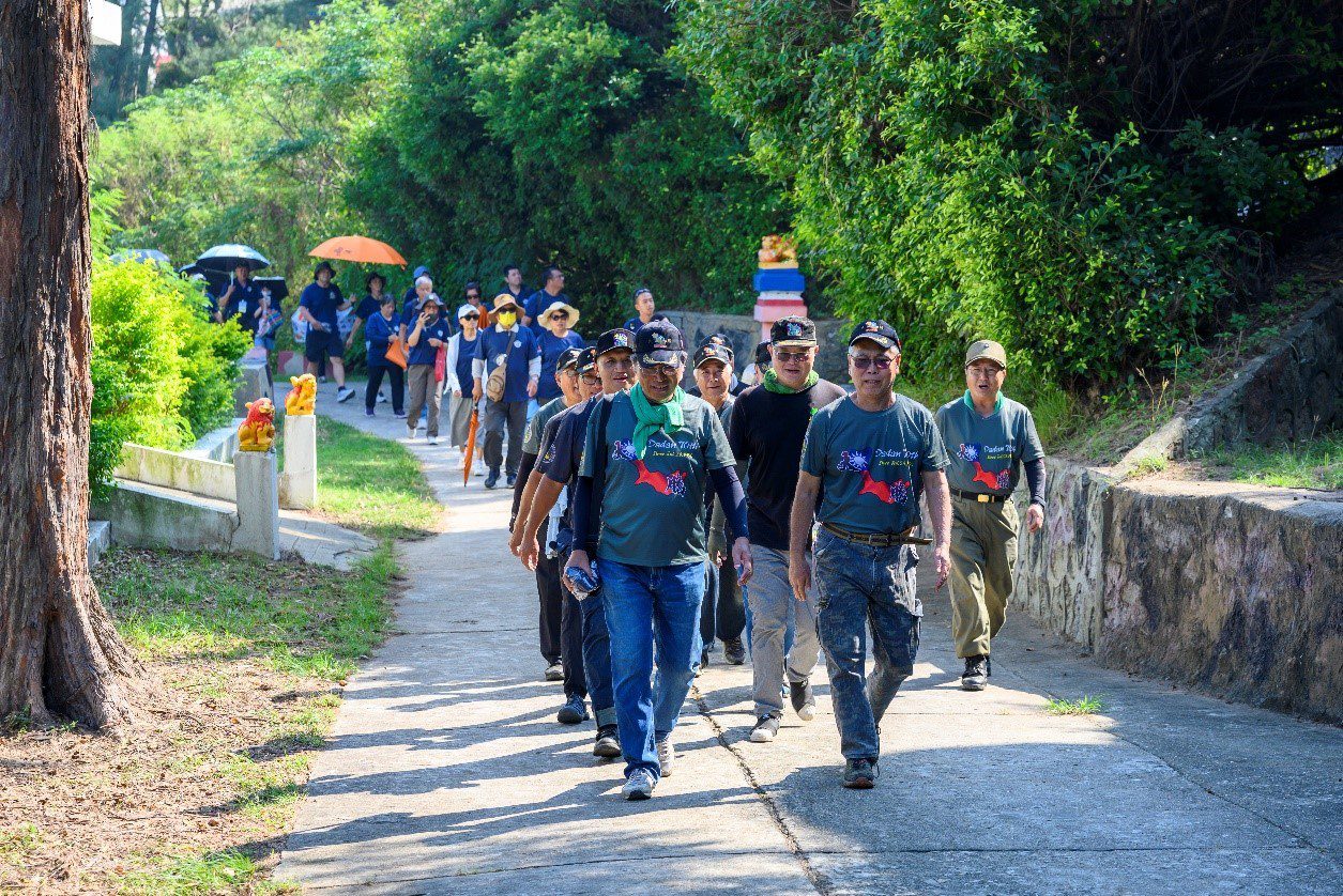 開幕典禮於下午盛大舉行,由原韻文化藝術團與忠義廟電音三太子表演揭幕,氣氛莊嚴熱烈,象徵多元文化融合與傳承。健走行程設計別具巧思,由大膽島老兵志工親自擔任領隊,帶領遊客沿途參訪神泉茶坊、心戰牆、明威公園與播音站,並結合口述經驗,分享過往守島生活點滴。這不僅是一場健走挑戰,更是一場跨世代的歷史教育與文化體驗,讓參與者在腳步之間深刻體會大膽島的戰地記憶與精神價值。