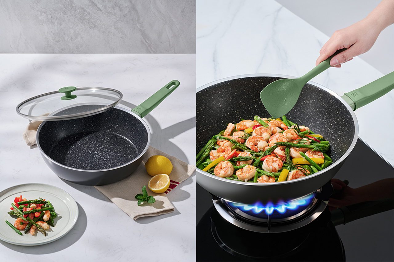 「手感升級」:有防燙擋火圈、耐久度通過 3.5 萬次測試不鬆動,加上符合人體工學的曲線,女生單手也能輕鬆翻炒。鍋型方面則一次推出四種尺寸——:18 公分湯鍋、24 與 28 公分深煎鍋、30 公分大炒鍋,無論是煮湯、煎牛排還是快炒青菜,都能一次到位不同尺寸滿足一家挑嘴的胃。防燙擋火圈,加上符合人體工學的曲線,單手也能輕鬆翻炒。鍋型方面則一次推出四種尺寸:18 公分湯鍋、24 與 28 公分深煎鍋、30 公分大炒鍋,無論是煮湯、煎牛排還是快炒青菜,不同尺寸滿足一家挑嘴的胃。
