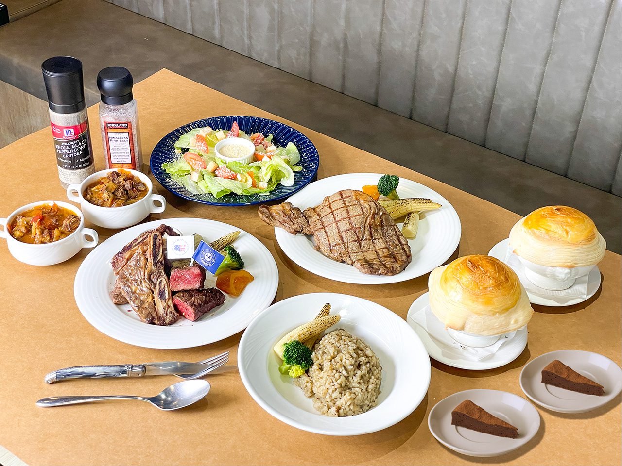 緊接著於10月24日登場的「絕對美牛雙人套餐」,可說是瀧厚美牛季的代表之作。主餐結合三大經典部位——美國帶骨牛小排、老饕菲力牛排、炙燒美國熟成肋眼牛排,讓饕客一次品嚐不同部位的油花與肉質層次。搭配凱薩沙拉、酥皮濃湯、法式牛肝菌燉飯與主廚甜點,完整呈現雙人奢華饗宴。原價 $2,627、活動特價 $1,799,以超值價格感受頂級美牛的厚實香氣。