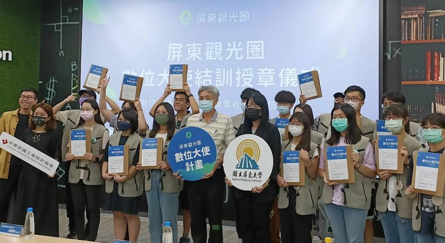 由交通部觀光局大鵬灣國家風景區管理處主辦的「屏東觀光圈數位大使商家輔導計畫」,從8月15日至18日,於屏東大學辦理共4天的數位大使培訓課程,並於課程培訓後進行「數位大使授章儀式」,以表數位大使在培訓過程中的優異表現。授章儀式當天更邀請到大鵬灣國家風景管理處郭進慶秘書、屏東縣政府交通旅遊處倪國鈞副處長,以及屏東大學副校長蒞臨現場共襄盛舉。在授章儀式上,大鵬灣國家風景管理處郭進慶秘書表示:「非常歡迎數位大使成為屏東觀光圈的生力軍,期待未來在針對屏東商家進行數位輔導時,能夠發揮所學,讓屏東觀光圈的數位化有亮眼的成果及表現!」