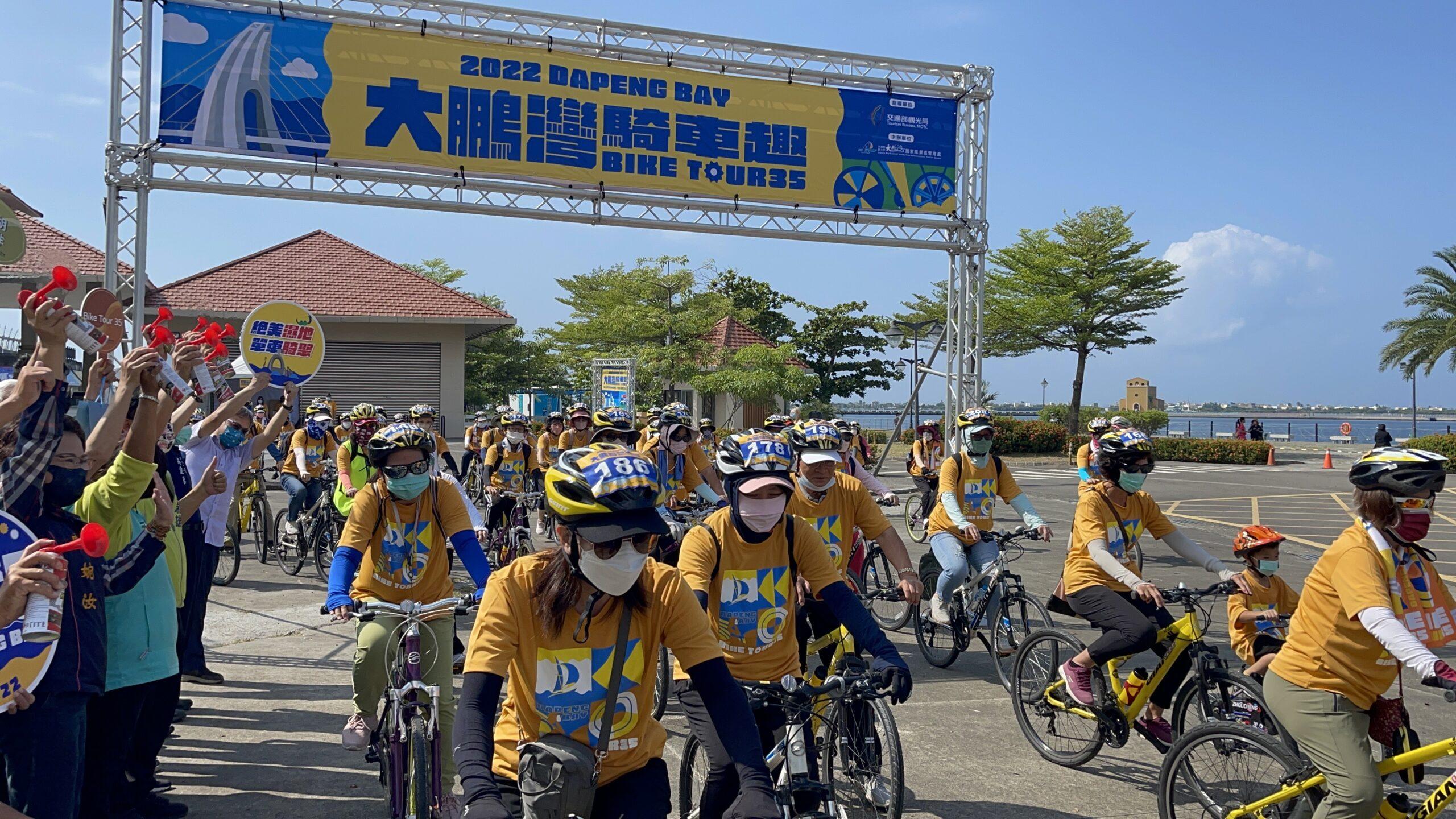 鵬管處表示,「大鵬灣Bike Tour35 騎車趣」第二年舉辦,今年規劃600名額分6個梯次出發,報名相當踴躍。今早由鵬管處許主龍處長、立法委員廖婉汝、屏東縣政府交旅處劉玉玲科長、林邊鄉公所觀光農經課陳加伃課長及大鵬灣觀光產業聯盟許裕麟理事長等人共襄盛舉,鳴笛出發。