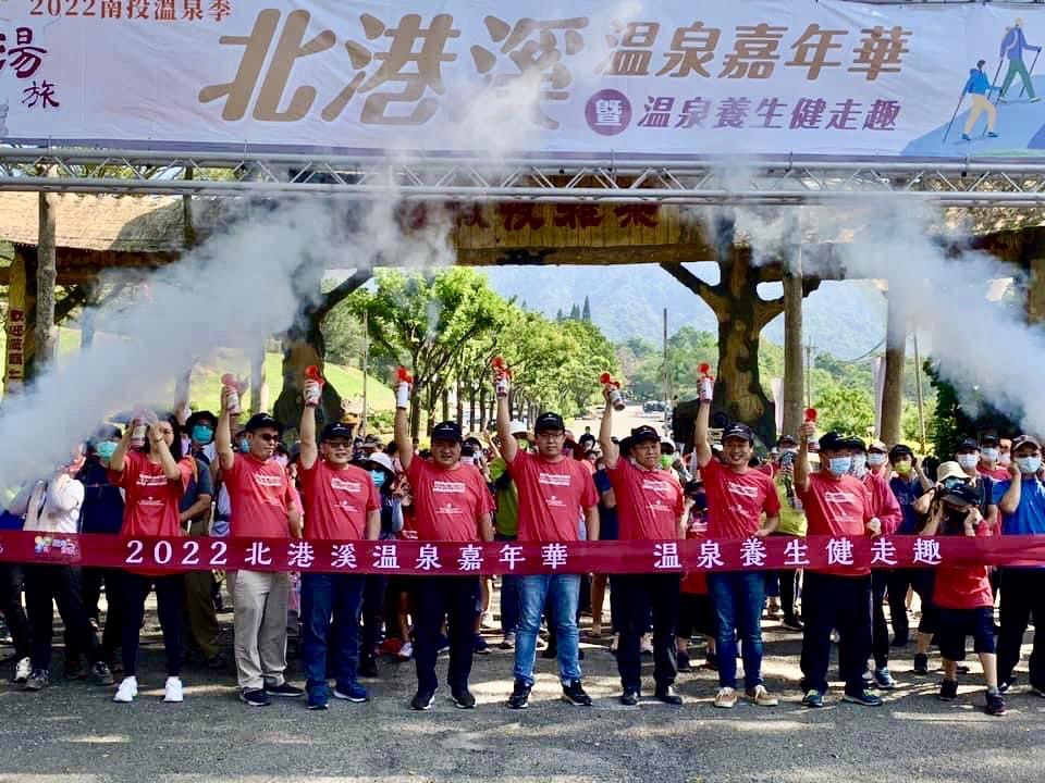 今日活動由南投縣政府觀光處陳志賢處長、中華民國溫泉觀光協會李吉田理事長、國姓鄉丘埔生鄉長、北港溪溫泉觀光協會李浩瑋理事長、糯米橋休閒農業區黃國峰理事長等貴賓共同鳴槍啟動。陳志賢處長特別感謝交通部觀光局補助南投溫泉季活動,透過實際行動支持及振興在地產業。