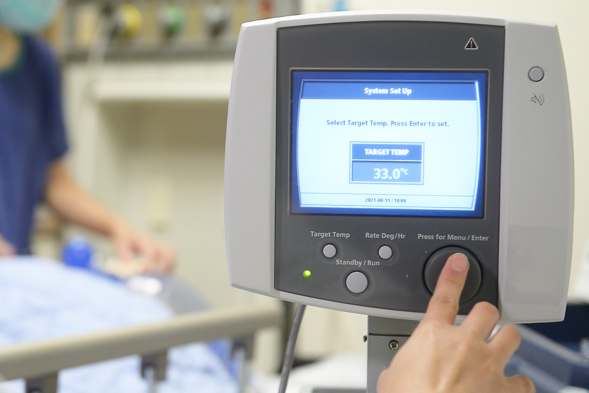 台北慈濟醫院心臟血管科醫師詹仕戎指出,當一名到院前心肺功能停止的病人來到醫院,急診醫護人員進行心肺復甦急救,心臟血管外科會替病人裝置體外心肺循環輔助,穩定生命徵象,只要確定不是腦出血造成的昏迷,就會將病人送到心導管室找尋可能的病因,決定治療方針。但許多民眾不知道的是,在治療完病灶後,醫療團隊會針對心跳休止、經急救復甦的病人施行「目標體溫管理」,透過低體溫療法,降低感染情事。