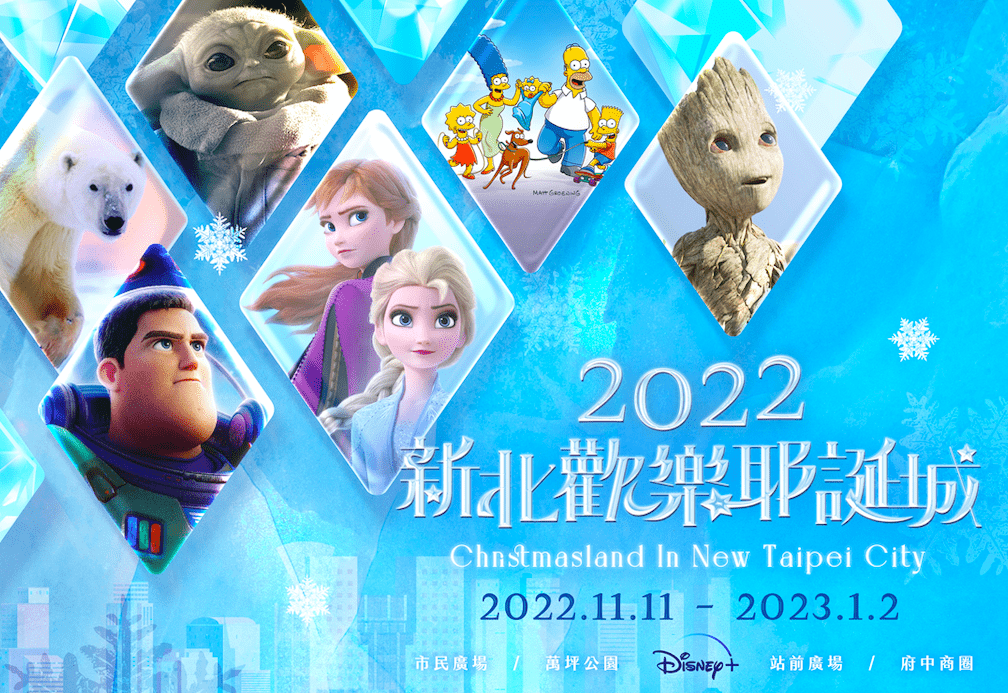 全臺萬眾矚目的冬季最大節慶盛事「2022新北歡樂耶誕城」,今年盛大迎來第12周年,加入更多角色與品牌,活動主題集結Disney+六大超人氣品牌陣容,包含迪士尼、皮克斯、漫威、星際大戰、國家地理與STAR,盛大打造讓所有民眾難忘的耶誕派對。今年新北歡樂耶誕城更規劃三大亮點:耶誕城首度化身銀色雪白之城,降下如幻似真的初雪,從燈飾、裝置到市集,讓耶誕城充滿雪國的白色浪漫;自11月11日(五)到明(112)年1月2日(一)止,持續點亮新北;讓民眾在這座宛若巨大冰雪城堡的城市,看到Disney+六大品牌角色為主題的裝置。今年還規劃了受小朋友歡迎的「童趣嘉年華」、府中商圈超唯美的白色盛宴「白色派對」、每年歌迷引頸期盼的「巨星耶誕演唱會」以及充滿異國氛圍的「德國耶誕市集」等一系列豐富活動,「2022新北歡樂耶誕城」勢必再次成為全球矚目的焦點!