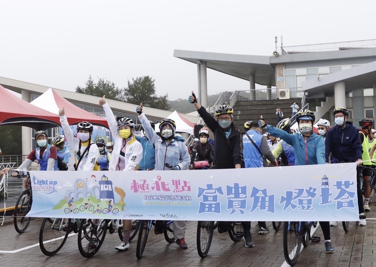 「Light up Taiwan極點慢旅」活動,以臺灣周邊美麗的海洋串連具特色的燈塔,搭配自行車慢旅騎乘方式,吸引民眾前往探訪,體驗臺灣美麗的景色與濃厚的人情。為持續推廣燈塔及自行車旅遊,北觀處於10月22日辦理極北點富貴角燈塔騎遊活動,除了有眾多長官貴賓到場,還有來自美國、澳洲及哥倫比亞的國際友人及皇冠海岸觀光圈業者與近400位民眾風雨無阻一起共襄盛舉。