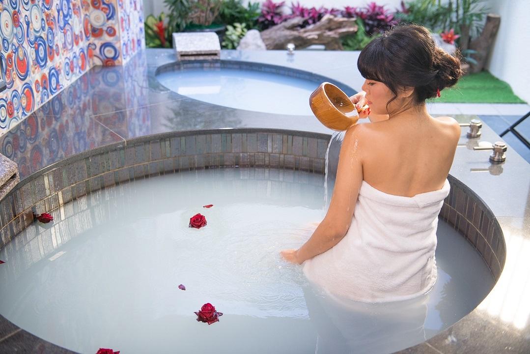 金山萬里溫泉資源豐富,如何在同中求異吸引客戶,就有業者非常創意的在溫泉池裡加料,還取名各式主題,有咖啡風呂、薄荷風呂、迷迭香風呂、人蔘風呂、玫瑰風呂、薑風呂和紅酒風呂,都是精心挑選的天然精油,功效各有不同,而且會每季更換不同的主題,供不同的溫泉樂趣與體驗,讓客人每次上門都有驚喜和新鮮感。