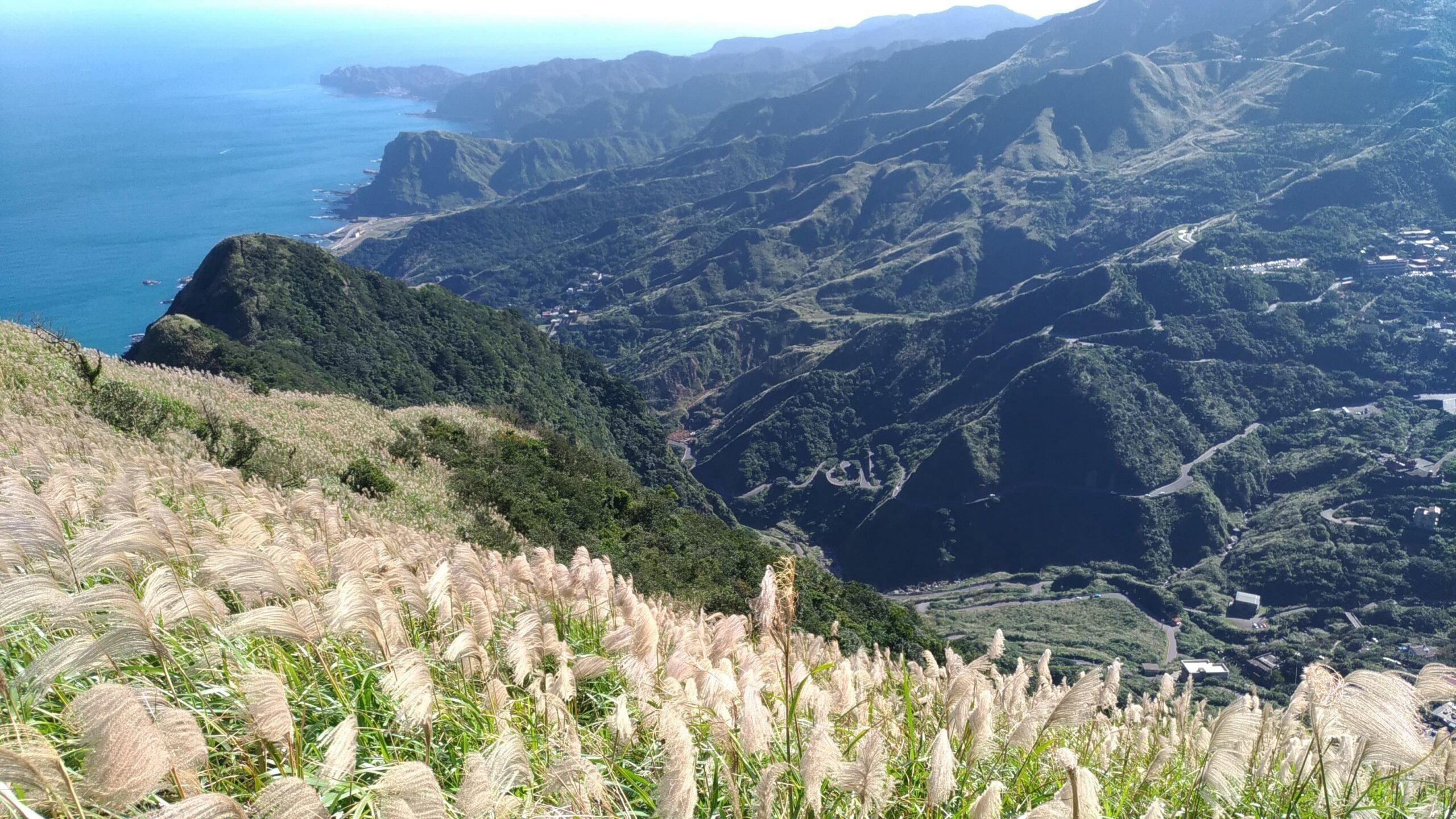 而鄰近九份老街旁的基隆山步道,能領會九份山海交錯獨特風光外,也是欣賞翻飛芒花美景好去處。踏上基隆山步道,沿途景致豐富多變,周邊山巒起伏、山道蜿蜒及海岸視野均盡收眼底。芒草花開之際,基隆山山腳至山頂滿布五節芒,蒼茫氣象令人讚嘆。約40至50分鐘即可從步道口步行至山頂,山頂的壯闊視野讓人心曠神怡,還可細賞東北角海岸景致,搭配沐浴在陽光裡的芒花,盡收搖曳芒花照映忽隱忽現陽光的屏息美景。