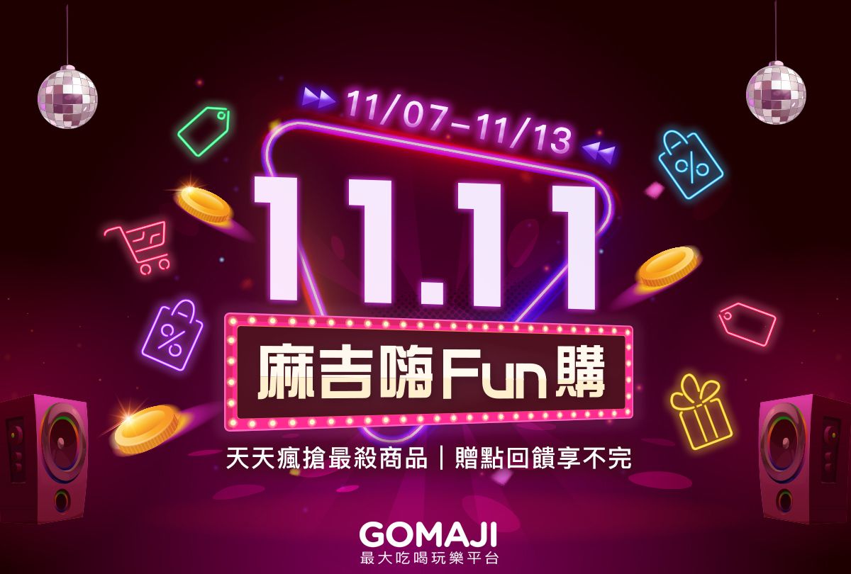 GOMAJI 雙11購物節號召美食餐廳、美容舒壓、旅遊住宿、宅配美食等明星商品加入本次年終盛事。活動期間天天享8%超殺回饋,限定三日加碼全站贈11%回饋,搭配幸運輪盤遊戲抽1111點,立即折抵更划算!限時限量強檔商品推出 「台北君悅酒店凱菲屋」自助吃到飽餐券下殺6折,秋冬泡湯必泡的「台中谷關溫泉飯店」雙人一泊三食專案原價4,850元下殺4折起,另有親子出遊最愛去的「苗栗西湖渡假村」等住宿優惠券、米其林一星港點「添好運」商品券限量下殺,都在雙11超殺限時搶購。吃喝玩樂通通有,買越多賺越多!