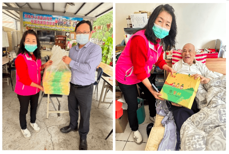 同時,參與活動的業者也慷慨解囊,於今日(1/10)捐贈鳳梨酥禮盒100盒給高雄市小港區山明里社區獨居老人,由里長陳阿子接受與發放,共同關心在地老幼,一起開心過好年。