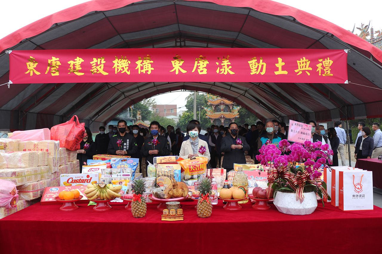 東唐建設機構一月十二日在嘉義縣水上鄉保安宮前舉行「東唐漾住宅建案」開工動土典禮,由嘉義縣水上鄉 林緗亭鄉長擔任主典官,並邀請嘉義縣議會黃榮俊議員、嘉義縣水上農會 林滄賢總幹事、店仔後保安宮賴炎成主委等…貴賓一同祝禱,祈求興建工程順利圓滿,建案完工後銷售業績長紅。