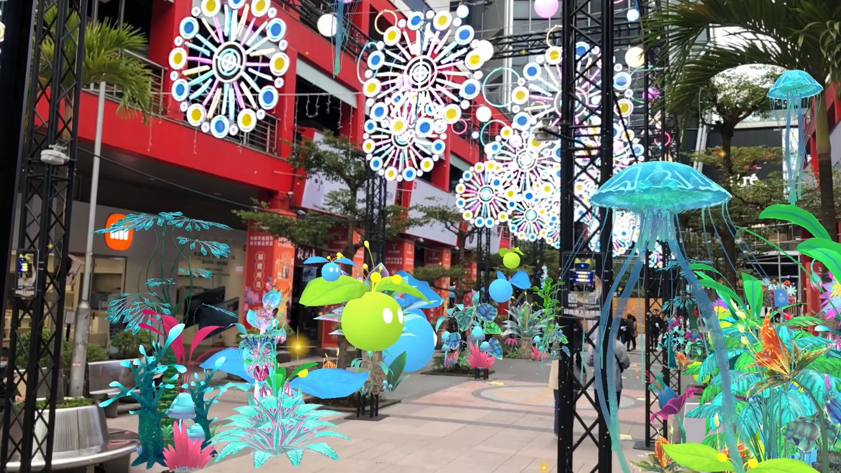 去年「白晝之夜」活動一晚就吸引近2萬人下載app體驗的大場域AR團隊「光時代」表示,為「光之輪」展區打造的AR場景是充滿大自然氣息的花花花草草,不但有蝴蝶飛舞穿梭其中,還有不少藍色水母會從地面冉冉上升後消失在天空,結合現場實體燈飾,帶給觀賞者夢幻迷離的感受。