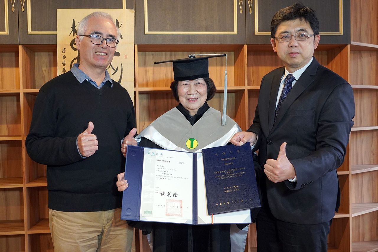 陳美子指出,管理學院博士班的課程讓她收穫很多,因此她修完畢業學分之後,還是每個禮拜回學校旁聽,博士論文運用她擅長的書畫藝術元素,融入商品行銷,探討消費品注入藝術元素之後對於消費者知覺價值的影響,孜孜不倦的學習精神,可以說是活到老學到老的最佳典範。
