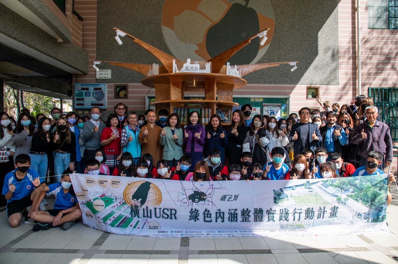 燕巢國中謝慧珍校長說,燕巢國中深耕學生閱讀能力,推動閱讀有成,連續多年獲得教育局閱讀標章學校,感謝樹德科技大學盧圓華特聘教授帶領的橫山USR團隊製作的木作漂書站,以及佛光山文教基金會暨岡山講堂慧炬法師、志工團隊協助募集圖書,共同成就「雲水漂書站」。
