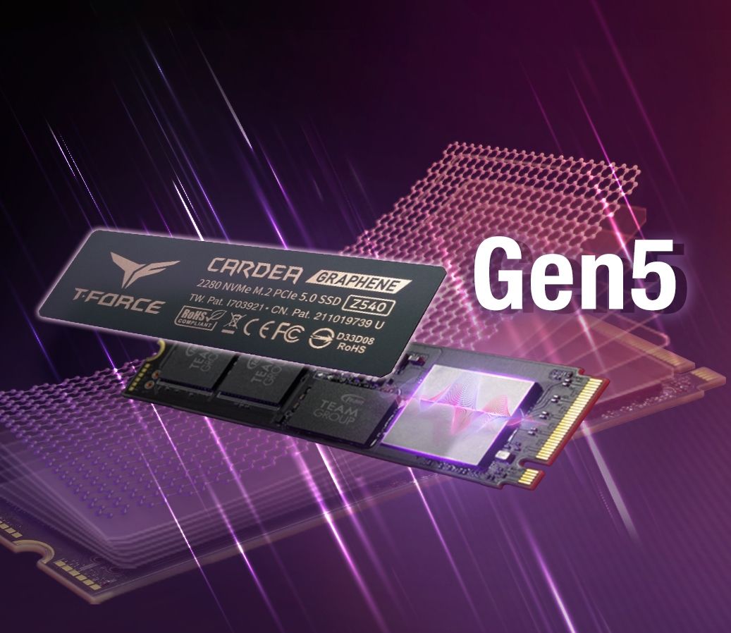T-FORCE CARDEA Z540 M.2 PCIe 5.0固態硬碟搭載榮獲多項專利認證的獨家超薄石墨烯散熱片,秉持永續環保理念選用100%可回收石墨烯材料製作而成,並應用其六角蜂巢晶格的晶體結構優勢將熱源迅速且均勻地橫向擴散,為Z540 SSD帶來頂尖散熱效果。Z540超薄石墨烯散熱片厚度小於1mm,不僅相容於各式PCIe 5.0主機板原生散熱片,且依T-FORCE實驗室內部測試所得,搭配石墨烯散熱片使用之SSD作業溫度相較僅使用主機板散熱片之作業溫度可降低約3-5℃,而CARDEA Z540採用的最新智能熱調節技術,內建溫度感測以自動調節效能輸出,可有效避免SSD過熱使用。T-FORCE實驗室為Z540 SSD量身打造的多項溫度解決方案,不僅能妥善保護SSD內資料完整性,更可將SSD於高速運作下有效維持良好作業溫度,並有效延長SSD使用壽命。
