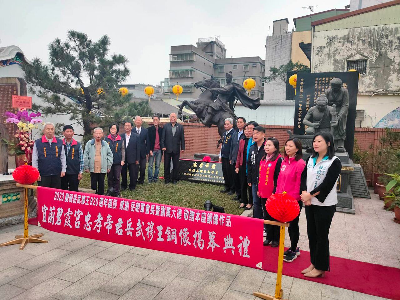 ▲岳武穆王後代岳朝軍等人的捐助下,3月2日碧霞宮「忠孝帝君民族英雄岳穆王」銅像正式揭幕。(圖/碧霞宮提供)
