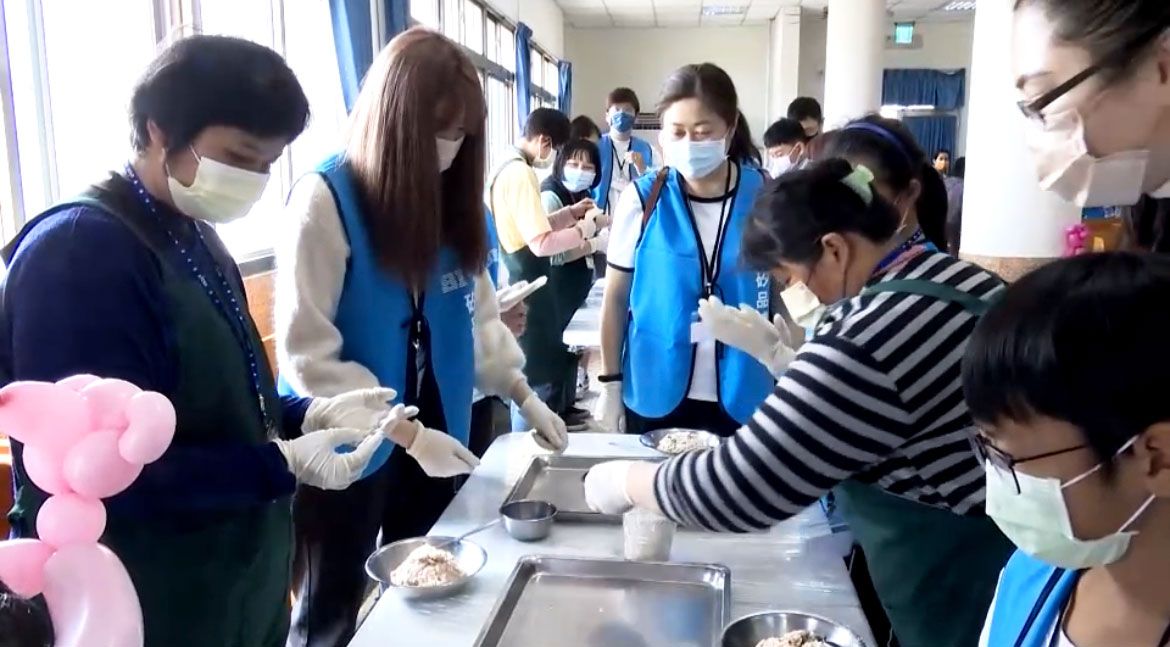 在喜樂水餃志工的教導下,矽品志工伙伴們也動起手來,體驗如何包出好吃的喜樂水餃,更有全家總動員來參與包水餃的活動,透過節目及說故事表演炒熱現場氣氛外,還參與包水餃活動與喜樂院生同樂,歡笑聲不斷。