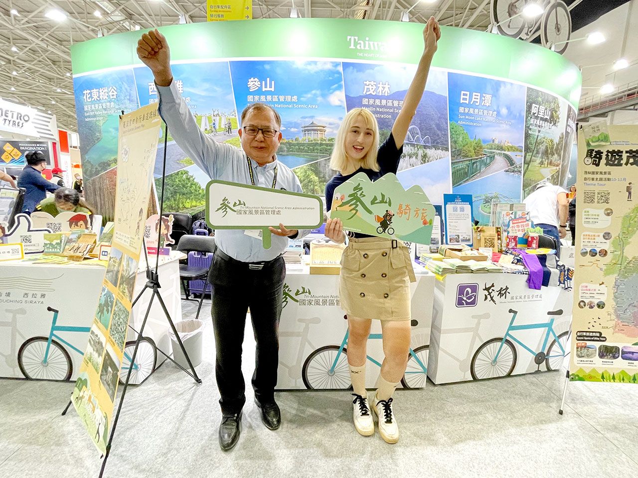 台北國際自行車展22日在南港展覽館熱鬧開幕,交通部觀光局在「國家風景區自行車主題館」推出結合13個風管處的自行車主題攤位,參山國家風景區管理處特別規劃結合賞花、自行車、追火車的遊程,受到現場民眾歡迎!參山處長曹忠猷和民眾互動,歡迎各界在自行車展期間到參山處攤位參觀,並報名參山的騎遊遊程,體驗結合漫遊賞花、騎自行車、追火車、文化導覽等遊趣。