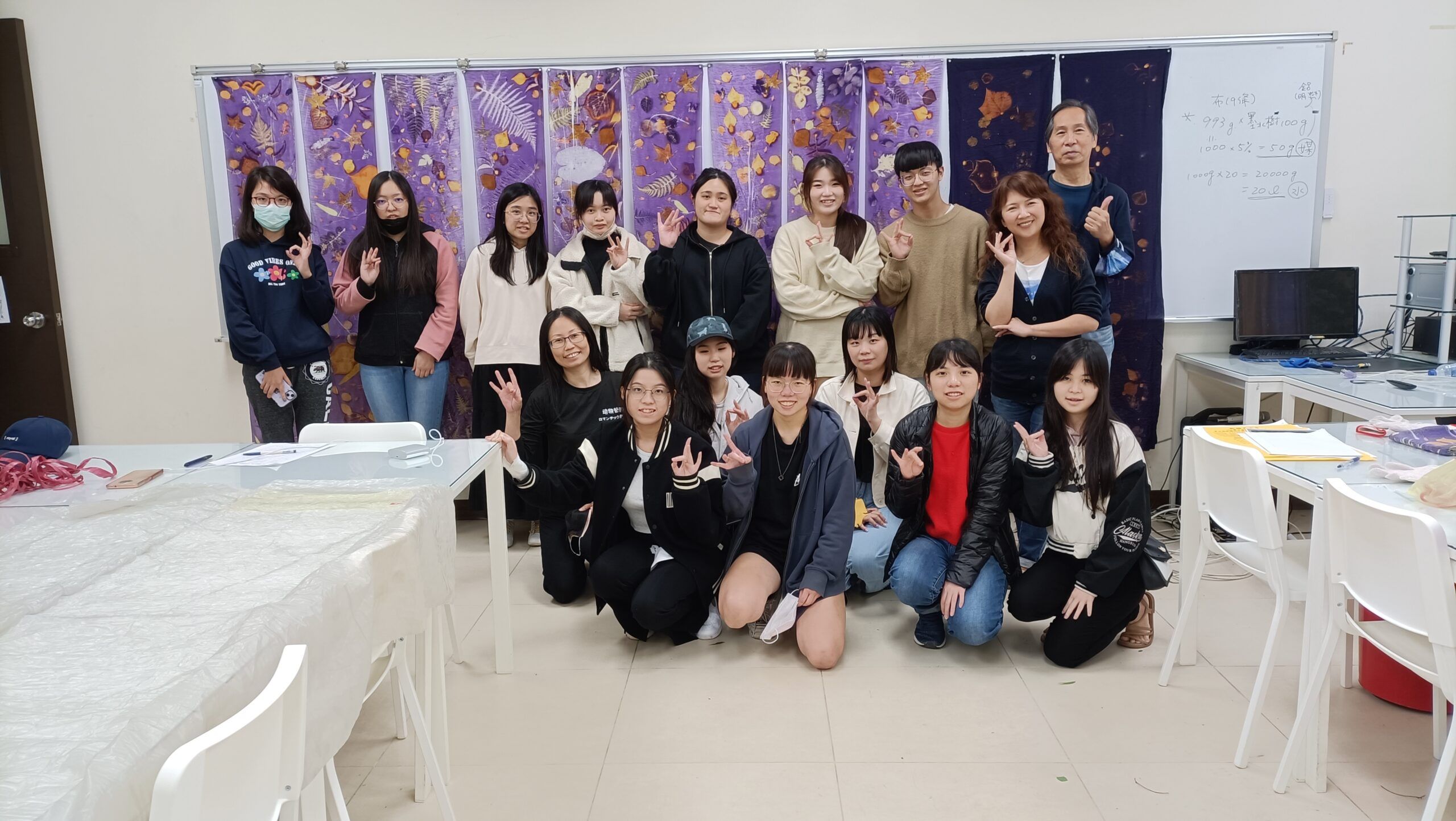 佛光大學產品與媒體設計學系請到業界老師,把這兩年相當受歡迎的花葉移印染(eco print)搬到課堂上,讓學生們大開眼界。系主任高宜淓表示花葉移印染以植物移印為主軸,將花的色彩和輪廓直接移印呈現植物天然的樣貌外,還能讓師生們認識臺灣傳統植物染與三原色植物的種類。