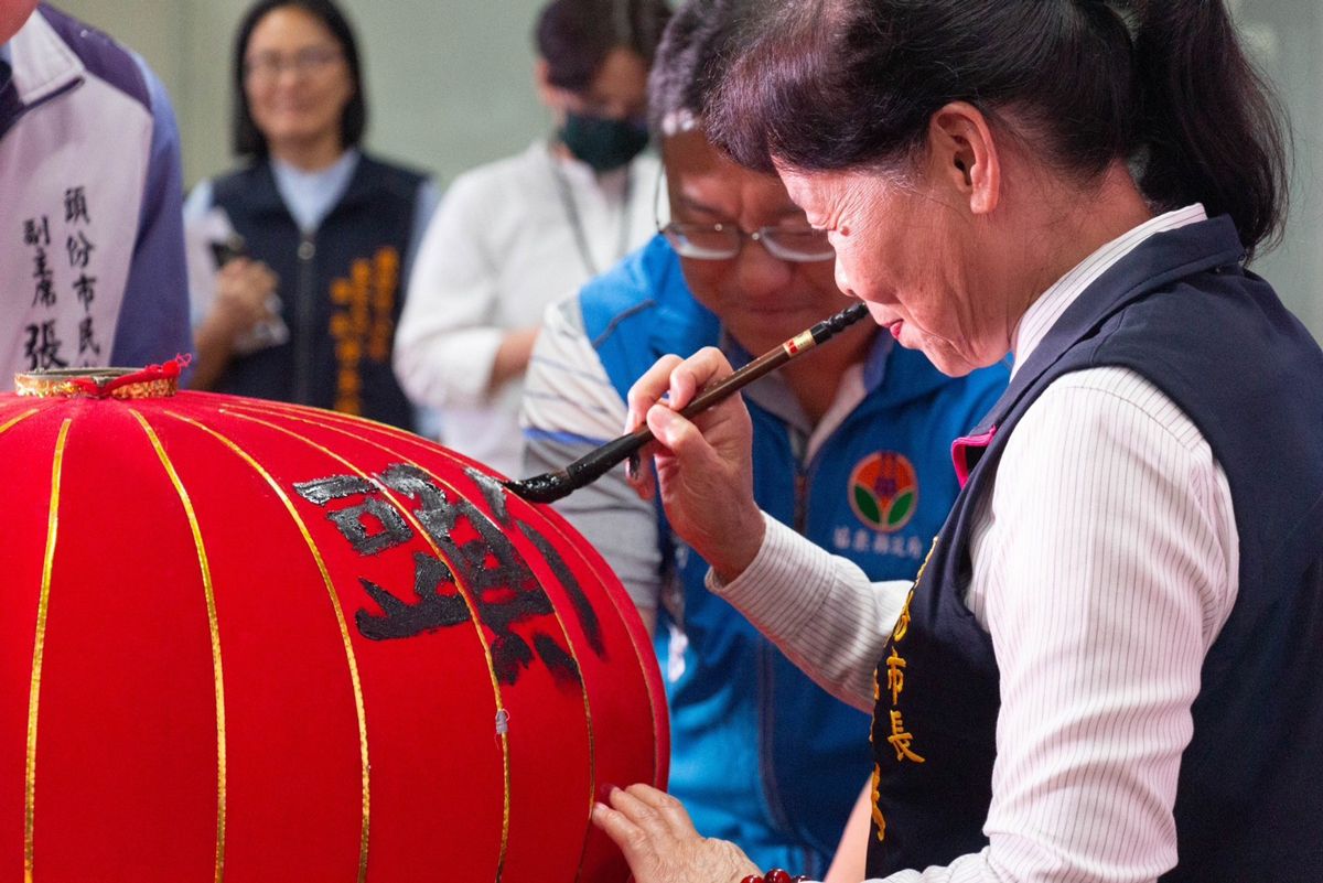 苗栗縣百年客家文化慶典「頭份四月八」於今日舉行記者會,由頭份市市長羅雪珠及長官共同參與啟動儀式,手持毛筆於大花燈上題字。隨著花燈的點亮,正式宣告頭份四月八靚燈好客節即將展開,同時也象徵著頭份的明亮未來。