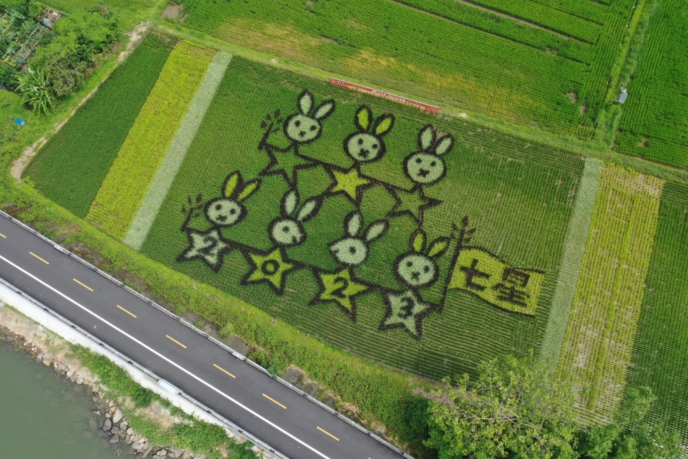 由台北市七星農田水利研究發展基金會主辦,臺北市政府產業發展局、行政院農業委員會農田水利署七星管理處指導,從2020年開始,連續4年在關渡平原共同打造彩繪水稻地景藝術,今年以生肖年及單位的代表七顆星來創作出可愛逗趣的「玉兔迎新 春耕迎好運」。