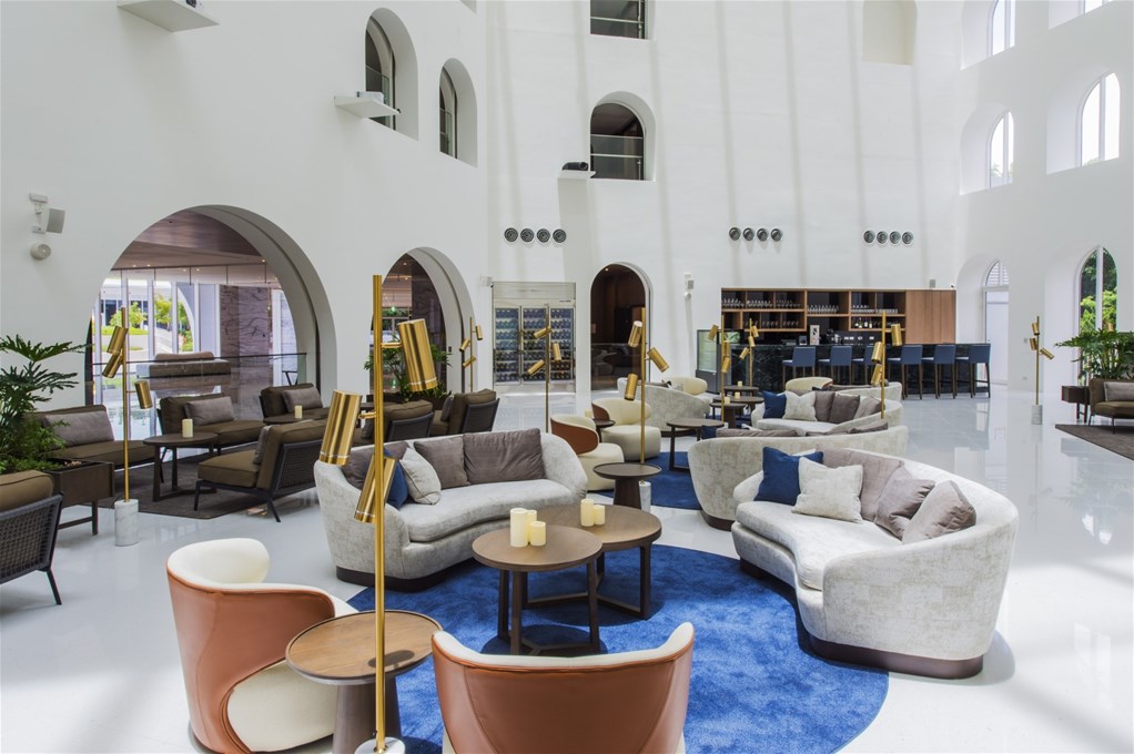 位於酒店3樓純白挑高開放式的滬尾之星,即日起至8月31日期間推出全新雙人下午茶組,供應時段為平日15:00~17:00、假日14:00~17:00,網美必點的三層雙人下午茶點組,第一層為3款季節水果與主廚研發的酒漬杏桃果乾,帶有微醺酸甜滋味;第二層為「綜合堅果蛋塔/百花蜂蜜」、「桂花風味綠豆甜糕/桂花釀」,其中桂花綠豆甜糕是以去殼綠豆蒸煮,再加入桂花與吉利丁製作而成,口感Q軟、風味優雅不甜膩;而最底層則為「糯米龍眼乾米糕/有機玫瑰醬」,黑糖與龍眼乾加入米酒拌合而成,富有傳統古早風味的糯米糕,最後搭配來自埔里有機玫瑰園生產的有機玫瑰醬,整體風味帶有酒香、果香、黑糖香與玫瑰花香,成為一款口味獨特的甜點,另外選用台東的有機環境生長紅藜麥,粒粒飽滿晶瑩剔透,與香甜南瓜、義大利橄欖油巧妙融合,健康有機、濃郁又爽口!迷人陽光穿透挑高天窗灑落,與好友閨蜜分享彼此近況,愜意享受初夏午茶時光!