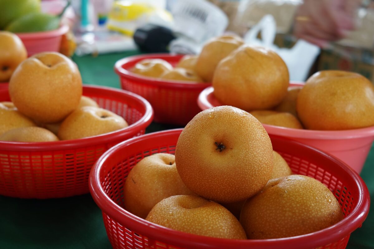 每年的七、八月是苗栗縣三灣鄉「三灣梨」的盛產期,生產的高接梨品種有豐水梨、蜜雪梨、黃金梨與寶島甘露梨等,本周(7/22-23)由臺北花博農民市集執行單位台北市農會邀請苗栗縣三灣鄉農會帶領轄區好農參加農特產品展售活動,都會區的消費者不必舟車勞頓即可買到。苗栗縣三灣梨鄉美名聞遐邇,因鄰近永和山水庫,新鮮空氣加上乾淨水源,孕育出雪白細膩的水梨、口感特別清脆多汁,是不可錯過的盛夏甘美滋味,送禮自用都適合。