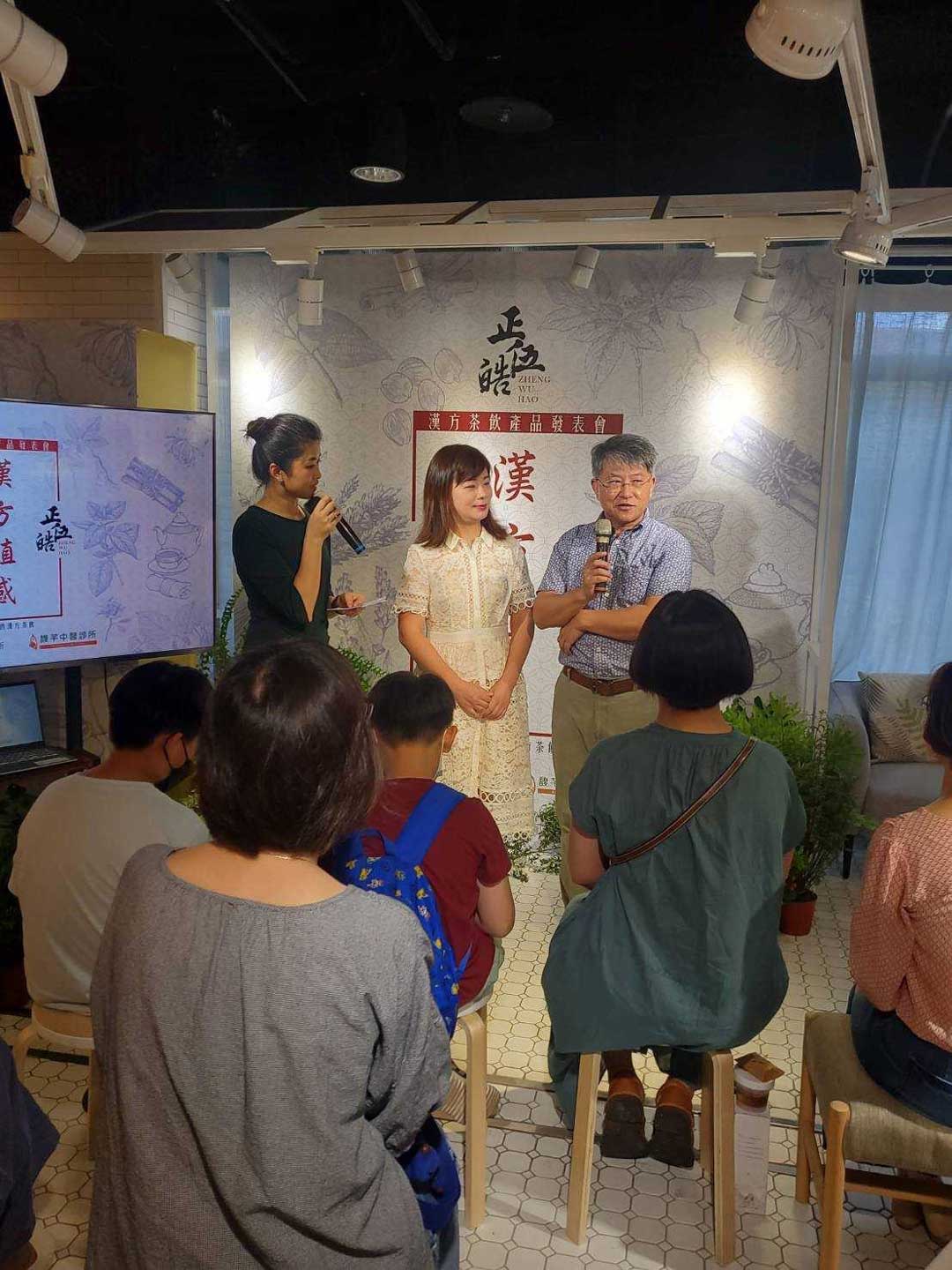在發表會上特別請來中醫診所院長為大家講解,院長表示現代人習慣喝冷飲,但我們人體是恆溫的,冷飲溫度低相較之下對身體不友善,因此開發正伍皓漢方茶飲,希望大家可透過溫熱飲的方式取代冷飲,且漢方茶飲不含任何茶類,不含咖啡因且採用天然材料,因此無論大人或小朋友皆可以放心飲用;發表會場也詢問院長什麼樣的人適合飲用?這些漢方茶飲採用中醫天人合一觀點調配而成,協助身體面對各種狀況比如夏天出門想要解暑、喝太多冰水想要去濕、或是想讓氣色好一點等皆有適合的款式可選。