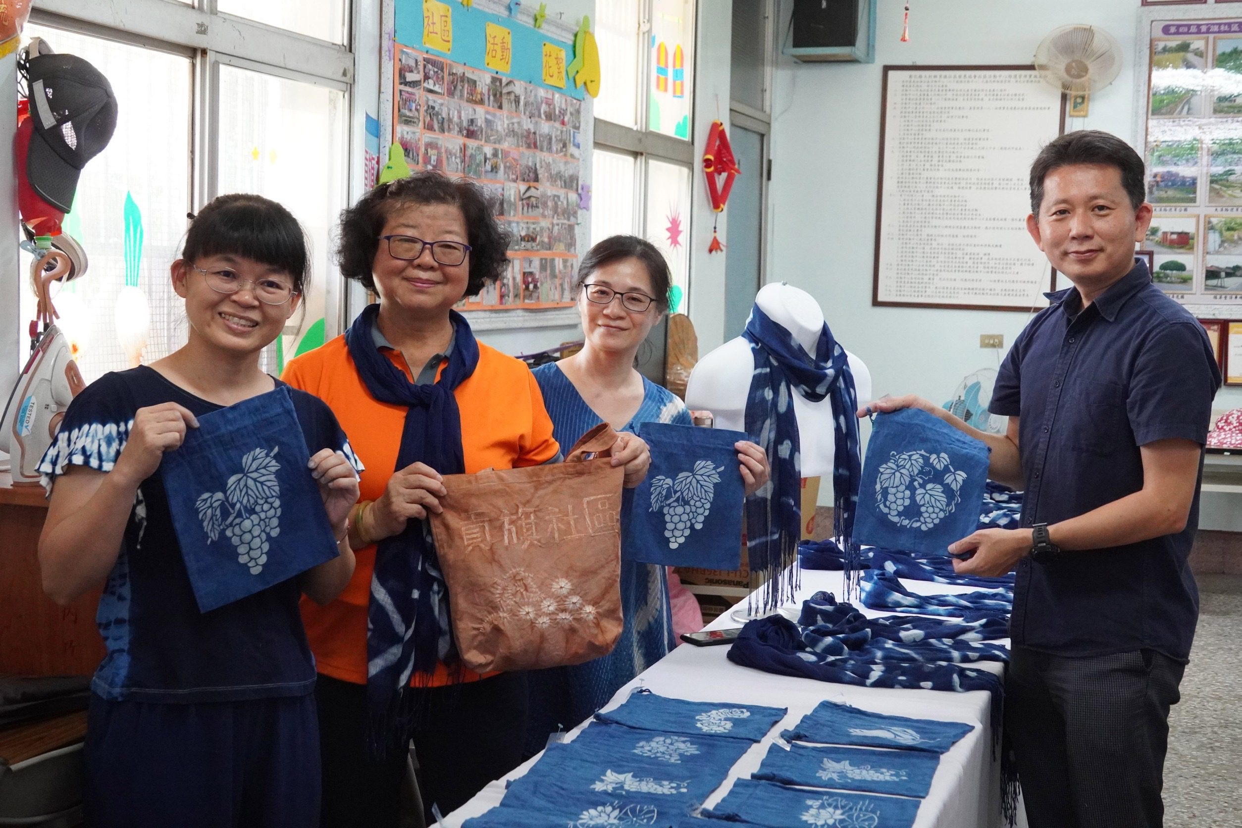 計畫主持人、大葉大學工設系助理教授賴建源指出,他本身就是貢旗在地的小孩,希望能協助社區做點事情,在彰化縣大村鄉貢旗社區發展協會的支持下,獲得文化部、彰化生活美學館社區營造計畫補助。大村鄉盛產葡萄,過去農民採收葡萄後,葡萄梗就成為農業廢棄物,其實葡萄梗也具有當天然染材的潛力,「永續城鄉-貢旗葡萄植物染產業建構之種子培訓計畫」希望能讓貢旗社區葡萄植物染邁向產業化,從4月開始,連續10個禮拜,規劃了葡萄植物染師資種子培訓課程,邀請自然色染工坊負責人湯文君老師帶領社區民眾認識植物染、學習相關技法,透過以環保為訴求的葡萄植物染工藝,展現地方特色與生活美學。此次共有20位貢旗社區居民參與課程,居民們認真的做好每一件作品,也期盼這些種子未來能拓展葡萄植物染的實用價值,邁向自產自銷。大葉大學積極落實大學社會責任,協助地方永續共榮,未來除了繼續協助社區申請計畫,也將透過校內USR Hub計畫,投入更多的資源,找出屬於貢旗社區的DNA,讓社區產業能更加茁壯。