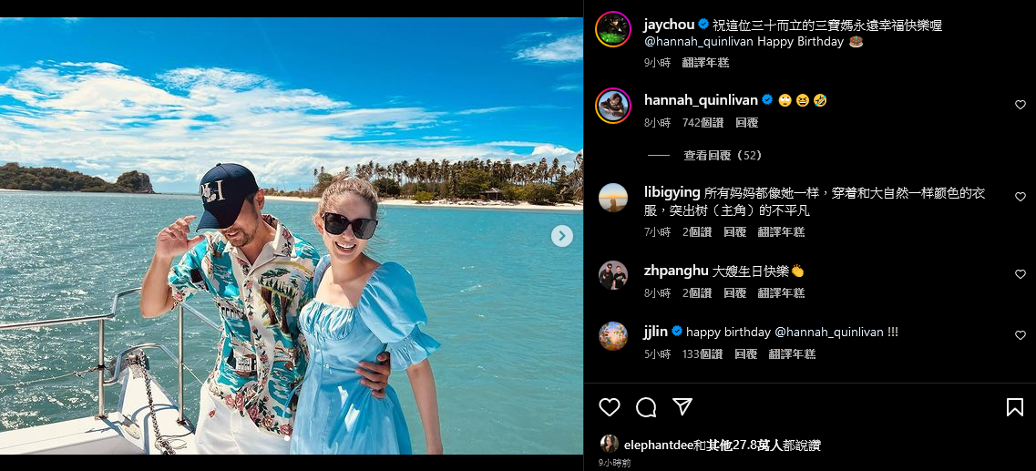 此貼文才出10小時,馬上湧入27.8萬人都說讚,其中還包括小S等藝人朋友,許多人紛紛留言祝「大嫂生日快樂」、「哥超浪漫的」、「羡慕的爱情❤️」、「大嫂看著一點都不像三個孩子的媽媽」、「這畫面太讚了」、「會有四寶嗎」、「昆凌有30歲了?」。