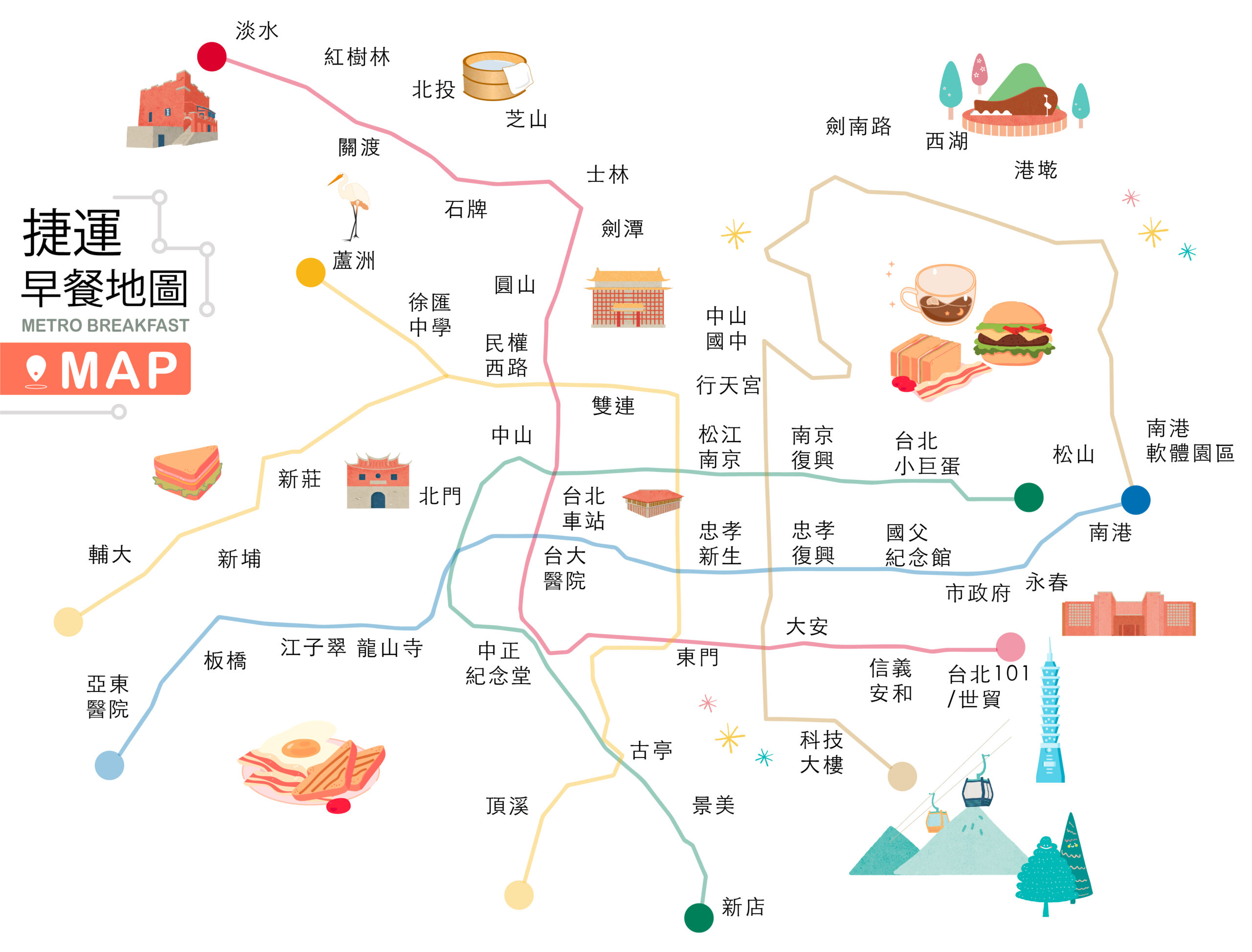 「2023捷運早餐生活節」活動專屬網頁,另設有「捷運早餐地圖」,方便旅客快速查找各站進駐的早餐商家,為自己預約一份早餐。本次活動參與商家,有中式及西式選項,包括古早味飯糰、路易莎咖啡、摩斯漢堡、早安美芝城、 福來早餐、哈肯鋪、樂田麵包屋、春日咖啡等攤位,甚至邀請到台北知名碳烤土司名店「真芳」進駐台北車站。為了替旅客爭取多賴床幾分鐘,首度與訂單系統「你訂Nidin」合作,提供取餐日前2日可於系統進行預訂,並於當日臨櫃付款取餐,也避開了早餐店眾多購買人潮。