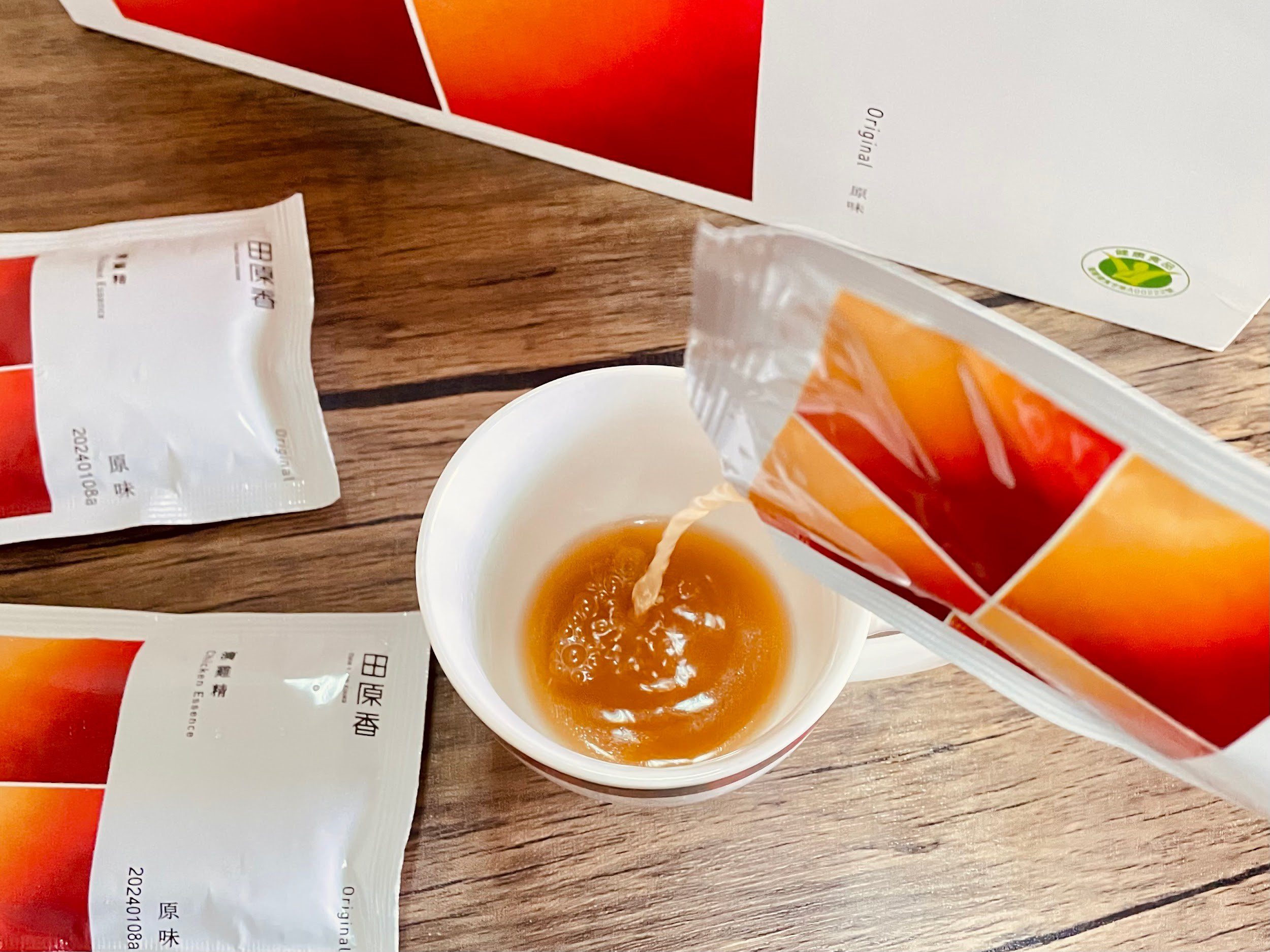滴雞精可說是現代人養氣補身的最佳便利補品,在市面上十分暢銷的「田原香滴雞精」,嚴選自家飼養的放山黑羽雞,遵循古法放置於陶窯鍋,以木炭慢火燉滴,萃取出雞隻完整精華,製作全程不加水熬煮。經過多道濾油程序去除油脂的滴雞雞,香醇溫厚的雞湯口感,美味和營養都兼具,不只能夠單喝,還可以拿來入菜做料理。