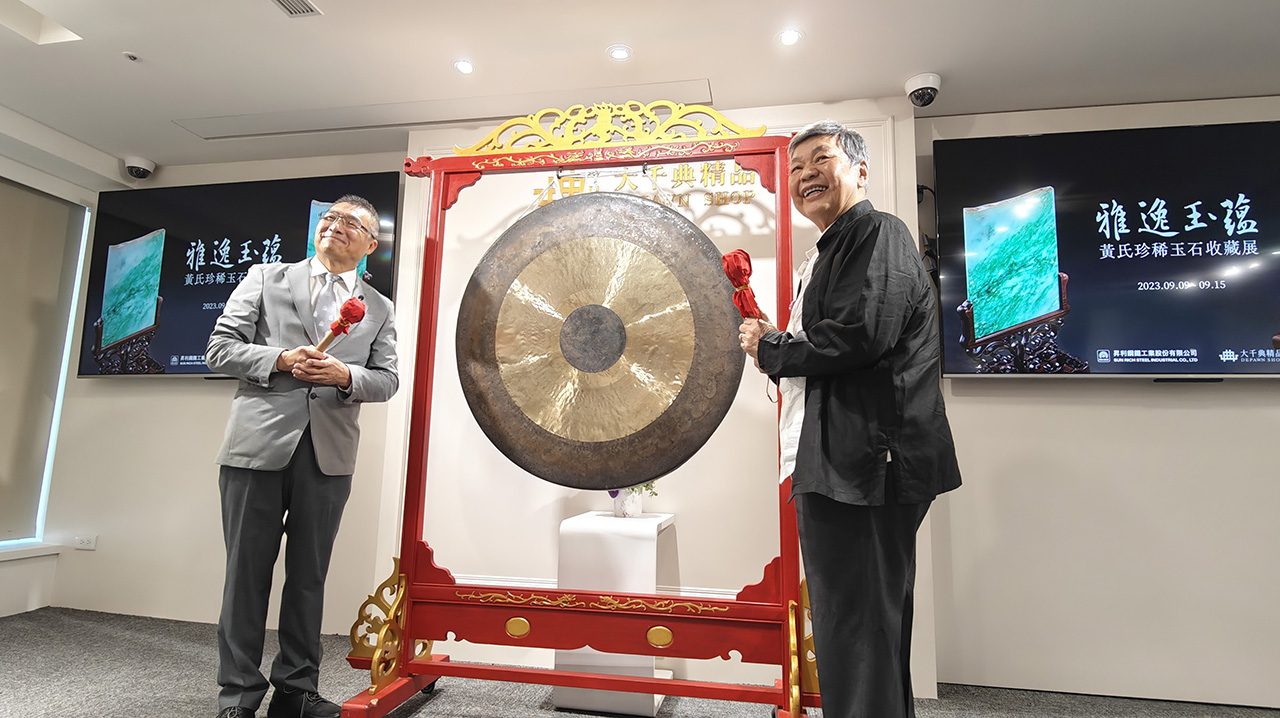 知名鑑定專家秦嗣林(秦老闆),在創辦大千典精品46年以來,首度主辦價值高達一億兩千萬的「雅逸玉蘊──黃氏珍稀玉石收藏展」,開幕典禮今(9日)在大千典精品會館舉行,收藏家黃友三董事長多年珍藏的58件上乘翡翠及和闐玉擺件正式曝光,現場冠蓋雲集,包含中佳電力董事長王應傑等人,以及多位產官學界人士均搶在開幕第一天前來參觀。