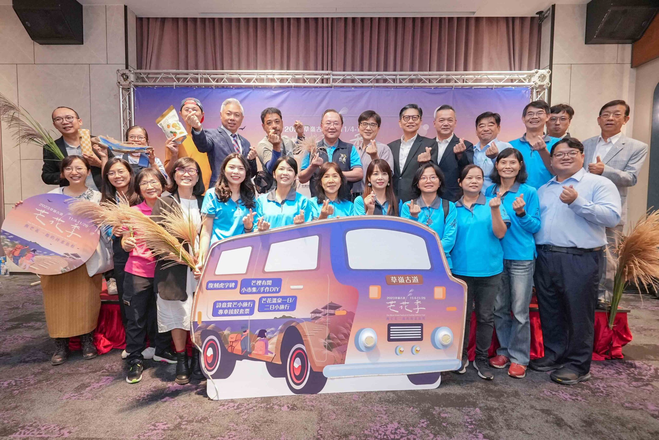 今日記者會由交通部觀光署東北角及宜蘭海岸國家風景區管理處處長馬惠達、立法委員賴品妤服務處副主任王毓中、新北市觀光旅遊局副局長莊榮哲、新北市貢寮區公所區長柯建輝、行政院農業部農村發展及水土保持署臺北分署副工程司高佩聖、宜蘭縣觀光協會(中天溫泉飯店)理事長王文新、宜蘭縣溫泉產業發展協會理事長梁博凱、新北市民宿發展協會理事長呂人鳳、宜蘭縣觀光工廠發展協會理事長賴文典、雄獅旅行社董事總經理黃信川、福容大飯店-福隆(福隆貝悅飯店)總經理戴瑞宏、礁溪9號股份有限公司總經理謝欣樺等貴賓與會,共同啟動2023草嶺古道芒花季精彩活動內容與優惠正式開跑!