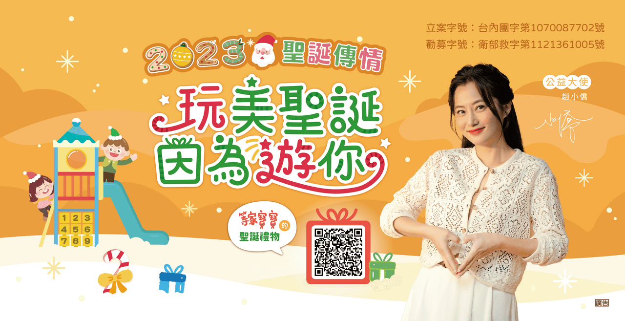 今年,等家寶寶社會福利協會發起聖誕傳情「玩美聖誕,因為遊你」計畫,邀請勇氣媽咪趙小僑擔任活動公益大使。歷經人工受孕失敗、懷孕胎停等挫折,趙小僑對孩童相關的議題格外關心,此次更是無償擔任活動公益大使,展現了她的無私與大愛。今年的聖誕傳情活動,除了為育幼院的孩子們提供超過700份的心願小禮物外,更發起「大禮物」募集計劃,重建危險老舊的育幼院遊樂場,為孩子的「遊戲權」發聲,讓每一位孩子都能在安全的環境中盡情遊玩。